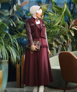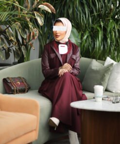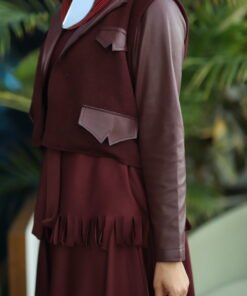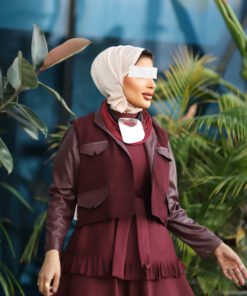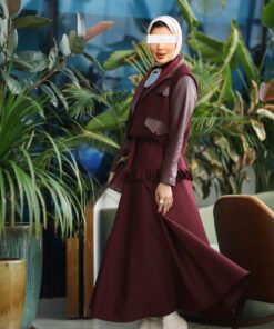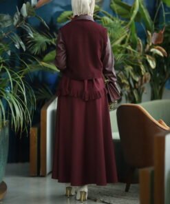 بدله من 3 قطع توب مع اكمام جلد وجاكت حفر وتنوره وحزام القماش ربيعي