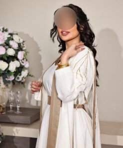 عباره عن قطعتين بشت حفر مع شك وفستان كم طويل مع شك و حزام