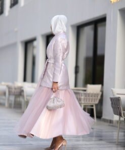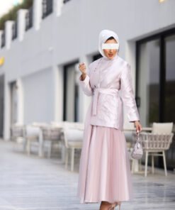 بدله من 3 قطع جاكت وتوب وتنوره تور مع شك يدوي وحزام متوفره بالالوان