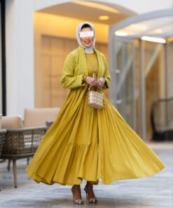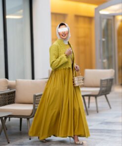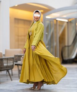 دراعه من قطعتين دبل كلوش مع تطريز مخرم