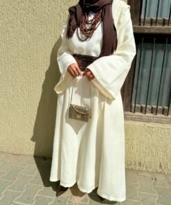 دراعه كلوش مع حزام لامع ميتاليك الدراعه مبطنه