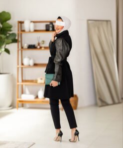 جاكت باكمام لامعة مع حزام متوفر بالألوان طول الجاكت المعروض33 انش لون الكم المعروض رقم 5