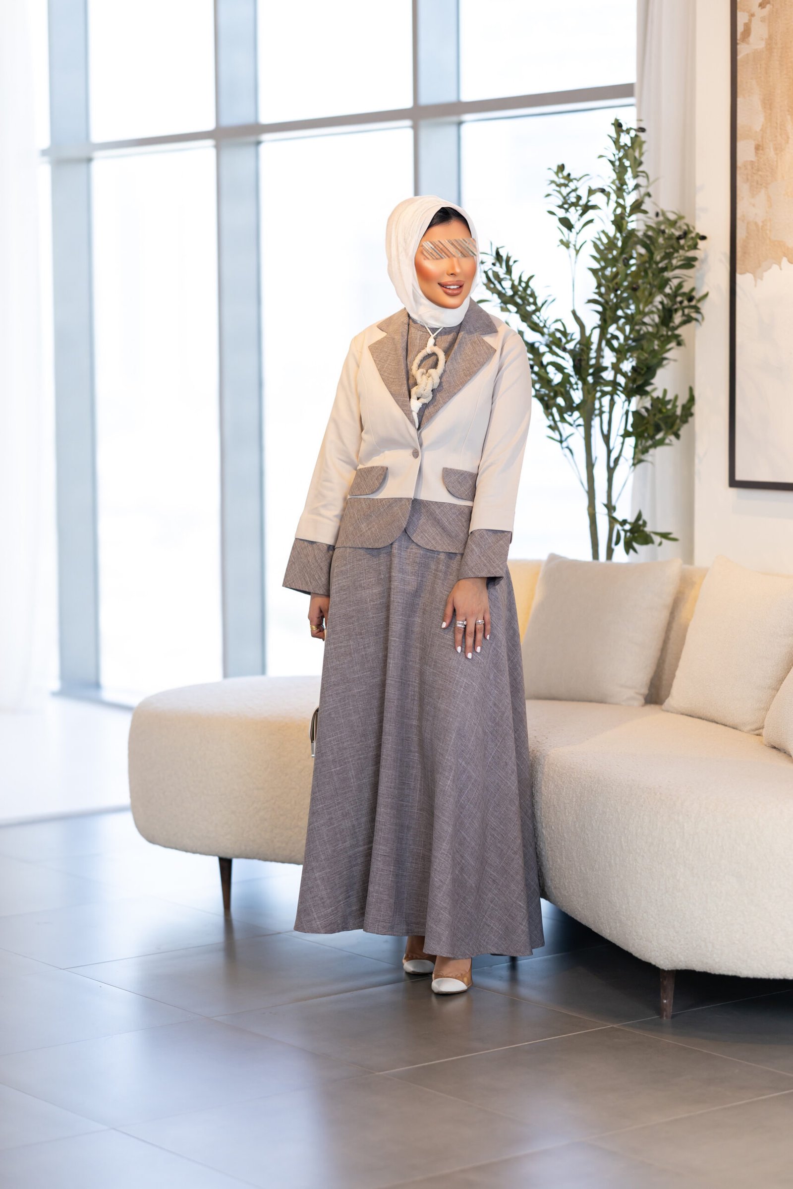 بدله من 3 قطع جاكت وتوب وتنوره كلوش