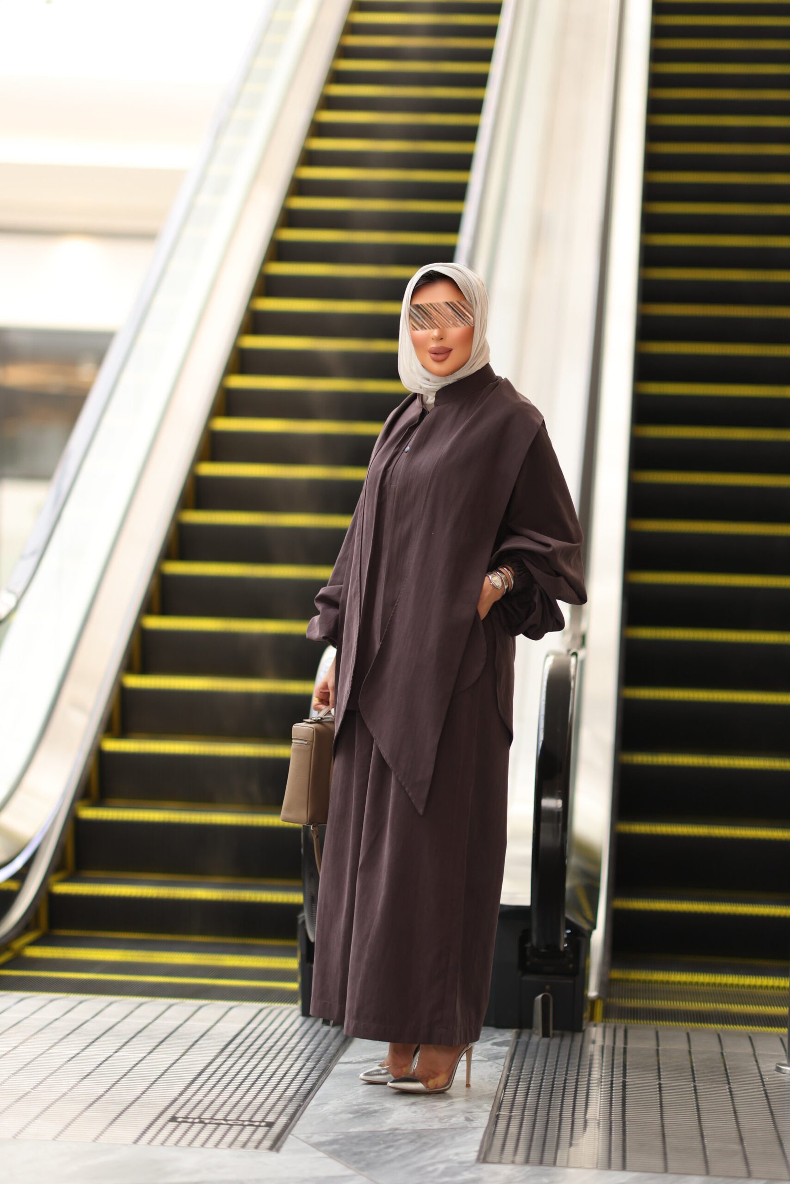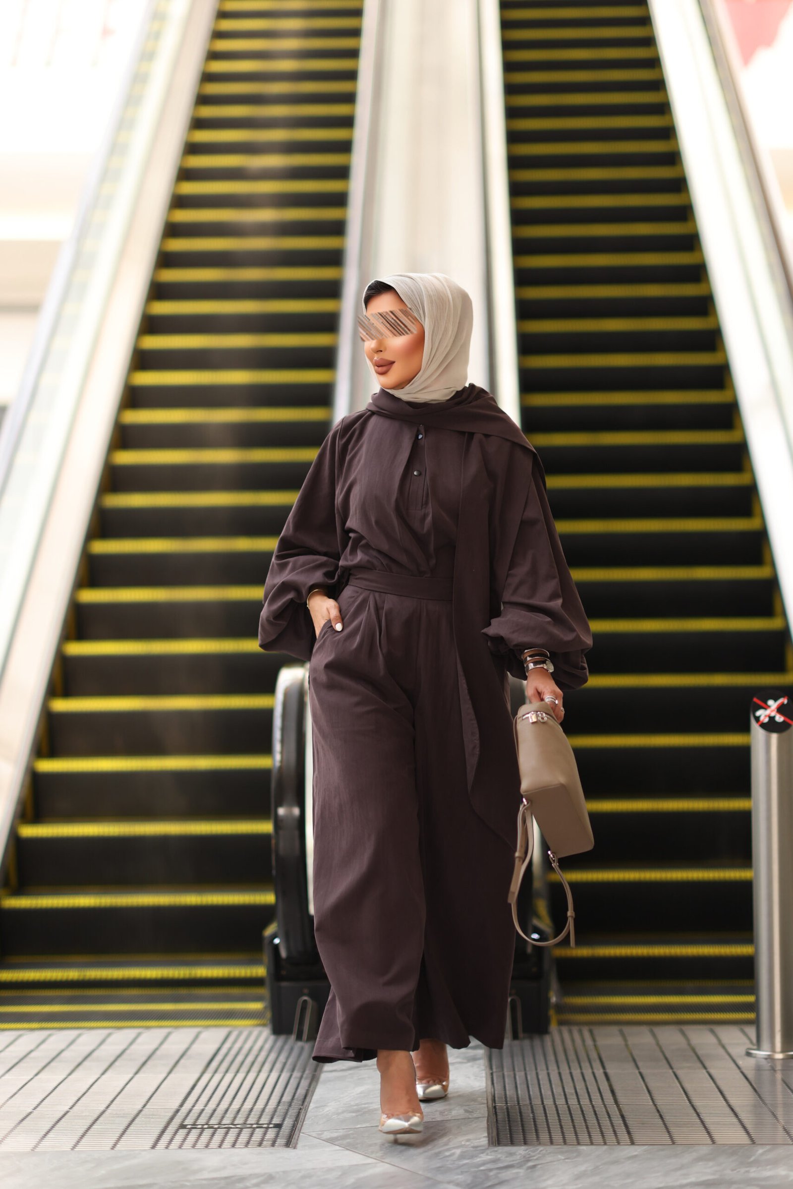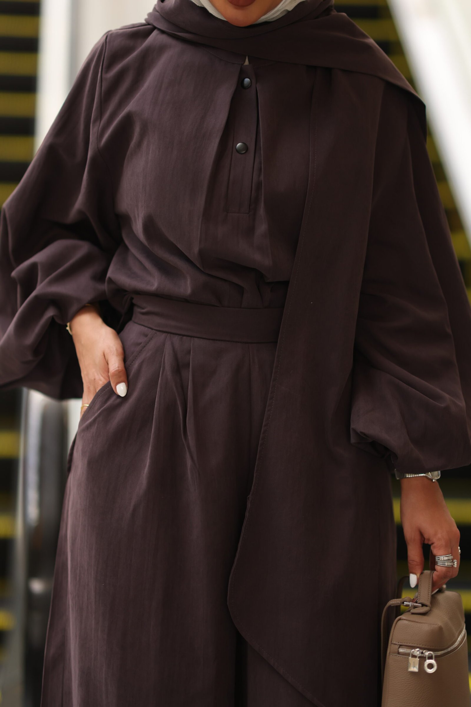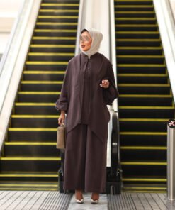 بدله من قطعتين قميص طول 33انش مع شال ثابت وبنطلون واسع متوفره بالالوان القماش ربيعي غسيل جاف