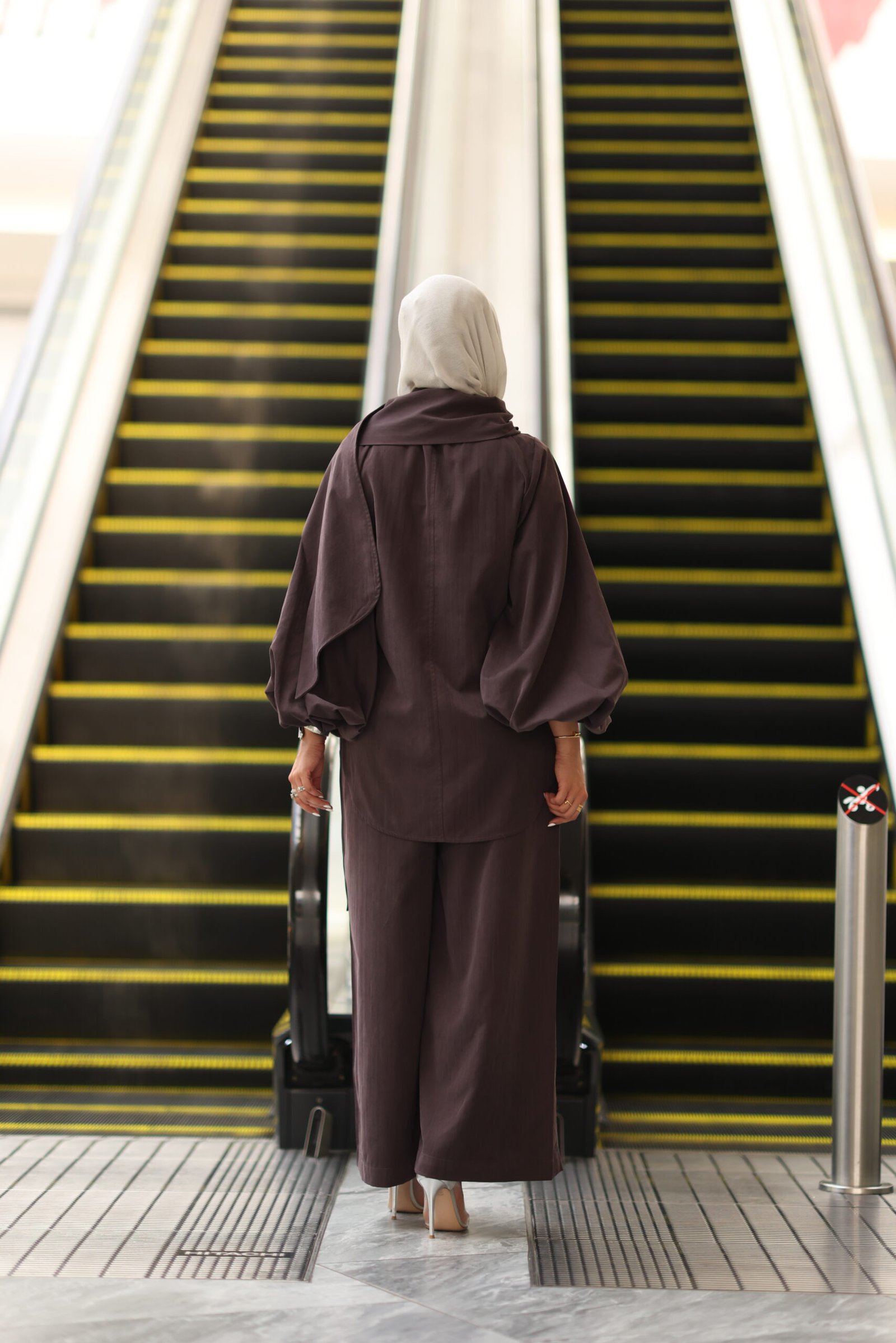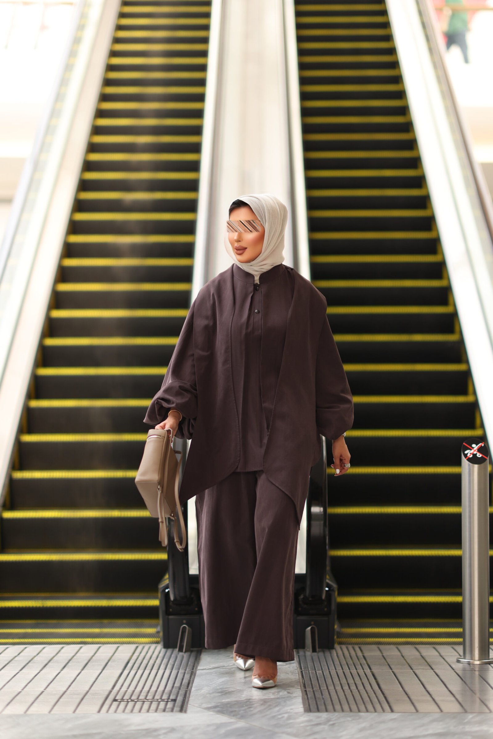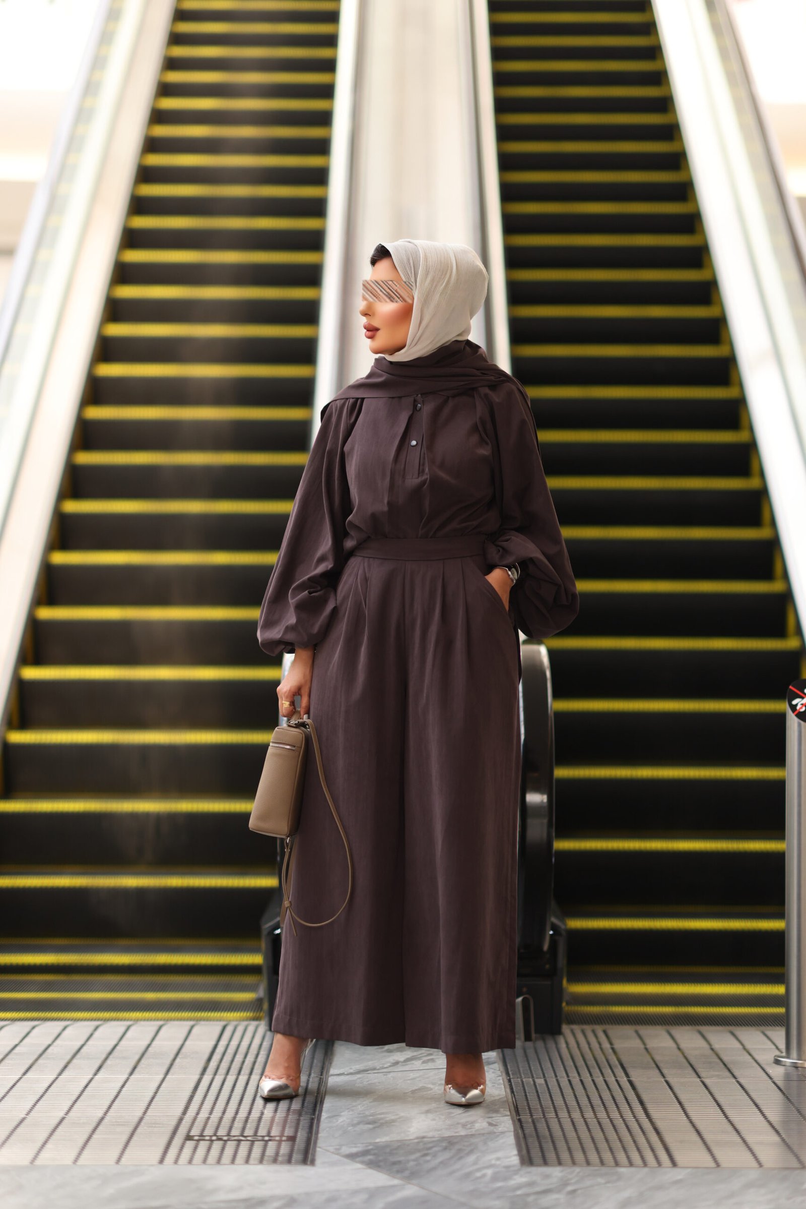 بدله من قطعتين قميص طول 33انش مع شال ثابت وبنطلون واسع متوفره بالالوان القماش ربيعي غسيل جاف
