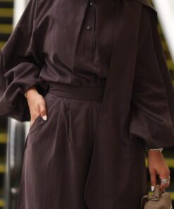 بدله من قطعتين قميص مع شال ثابت وبنطلون متوفره بالالوان القماش ربيعي غسيل جاف