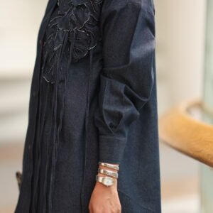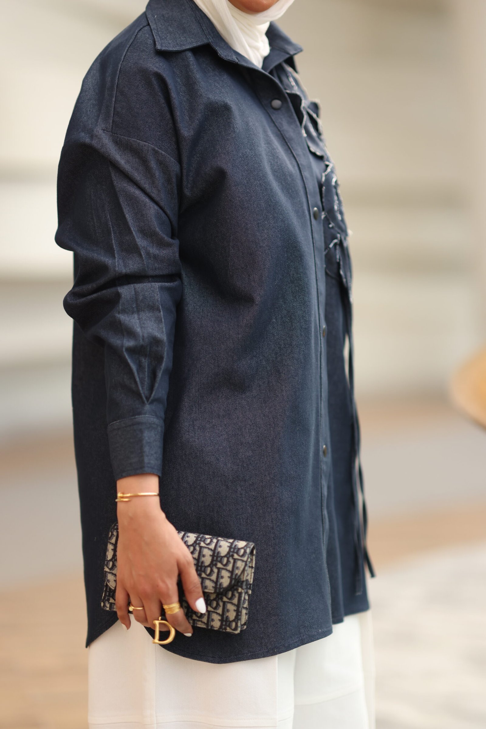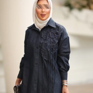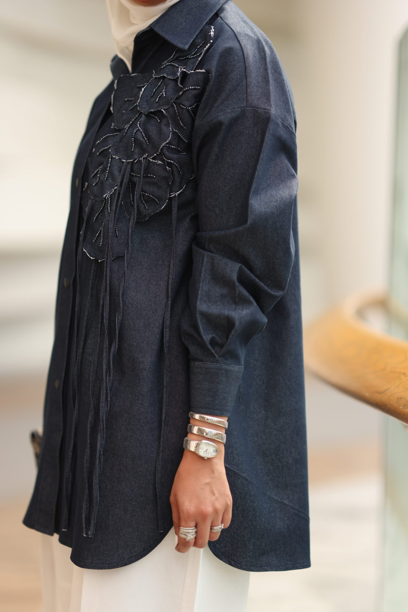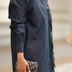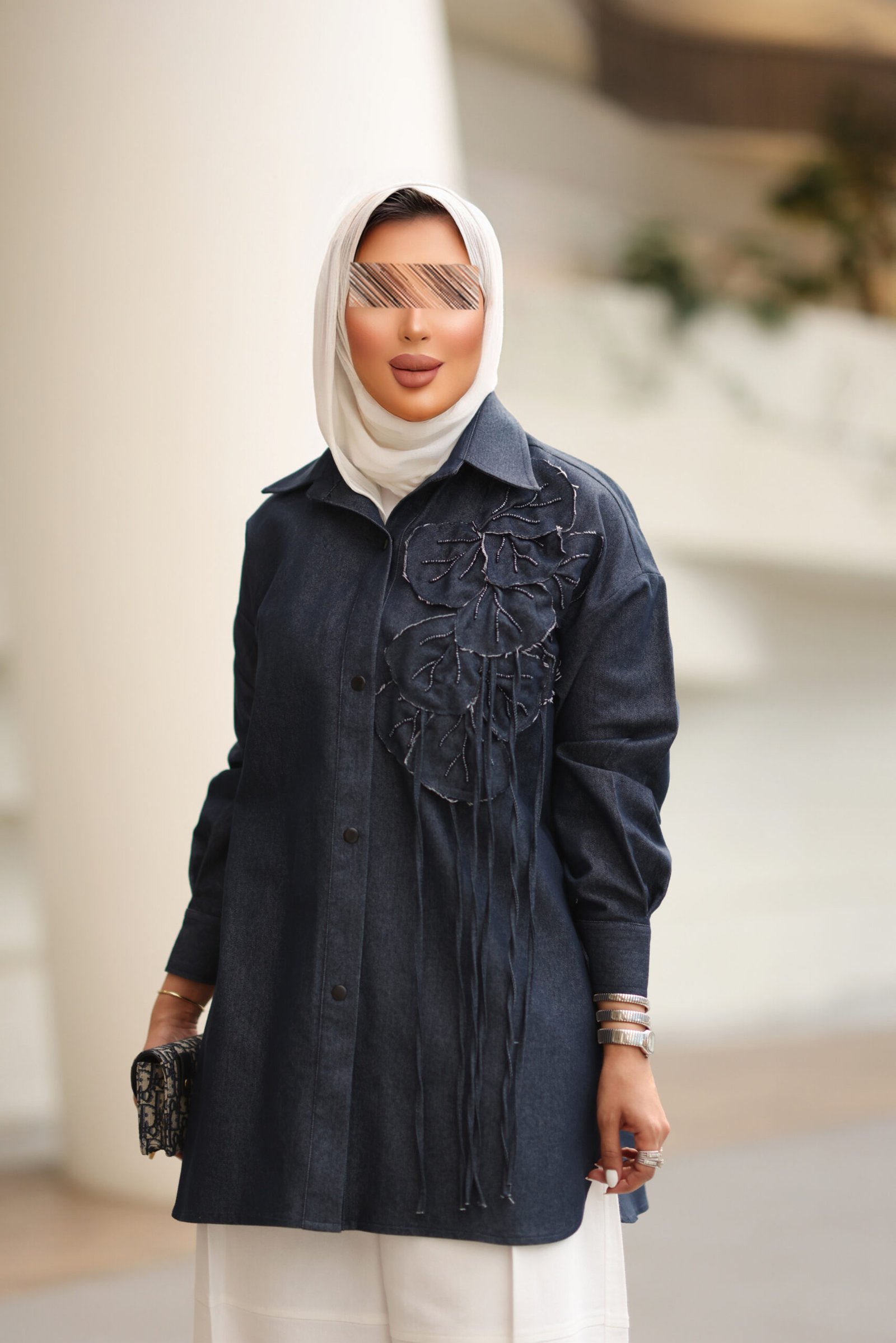 قميص جينز قصه واسعه مع شك يدوي طول الفميص 33 انش غسيل جاف