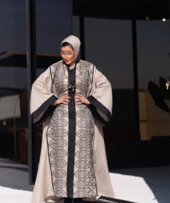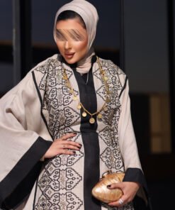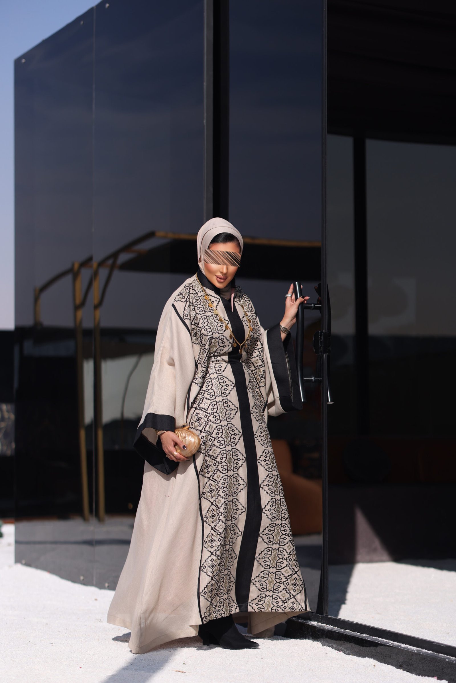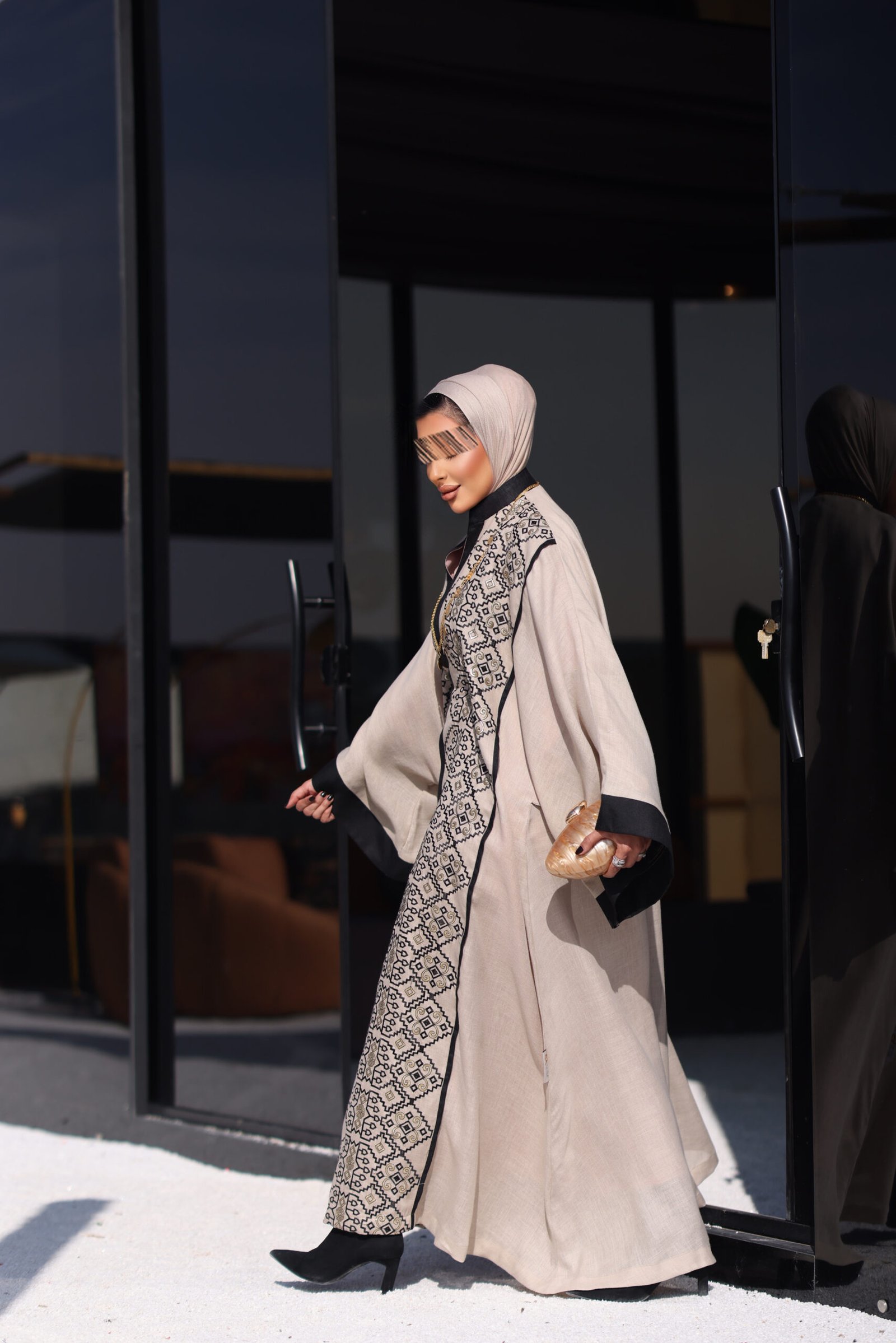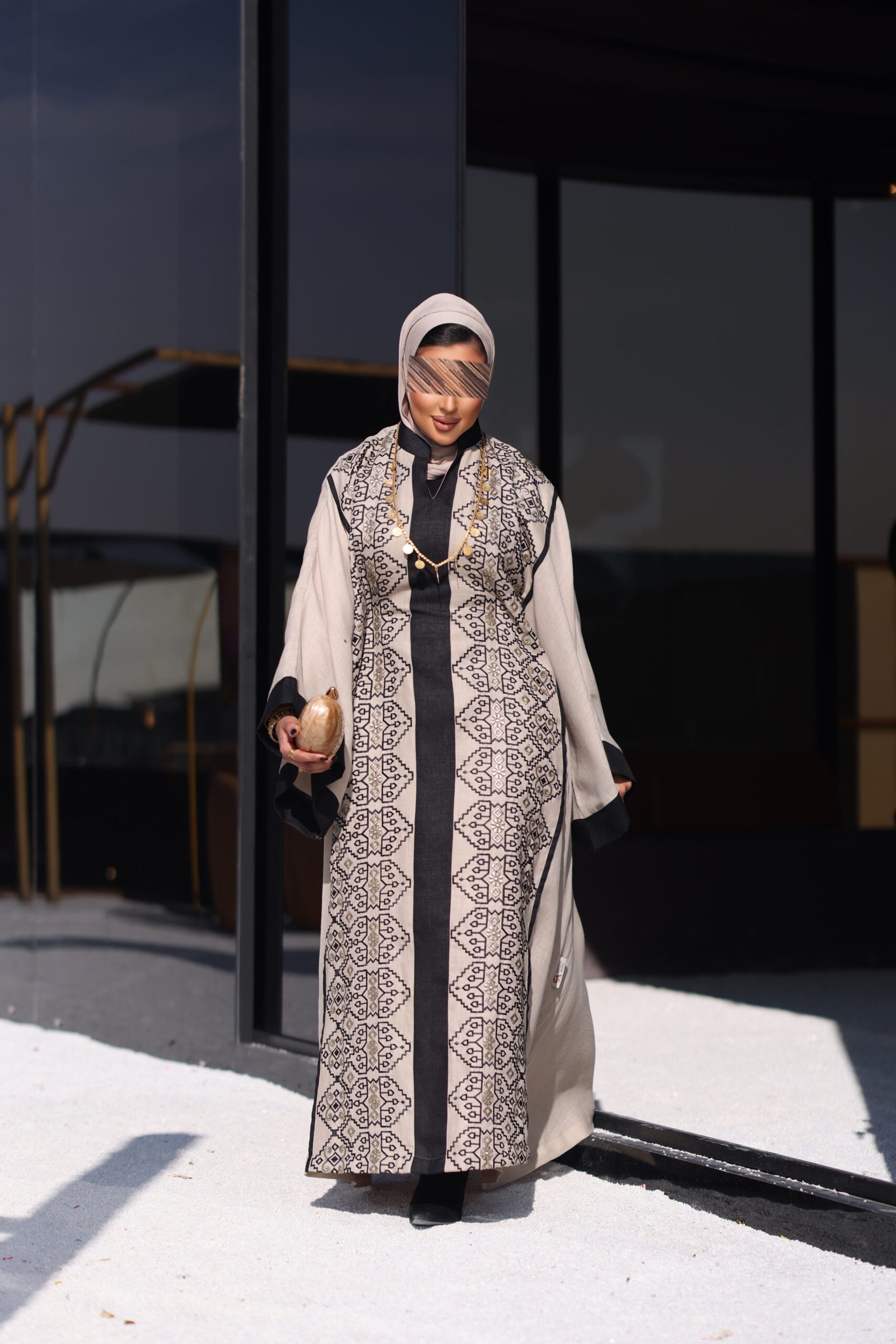دراعه من القماش اللينن مع تطريز كامله من الامام فري سايز مع حزام داخلي مع بطانه