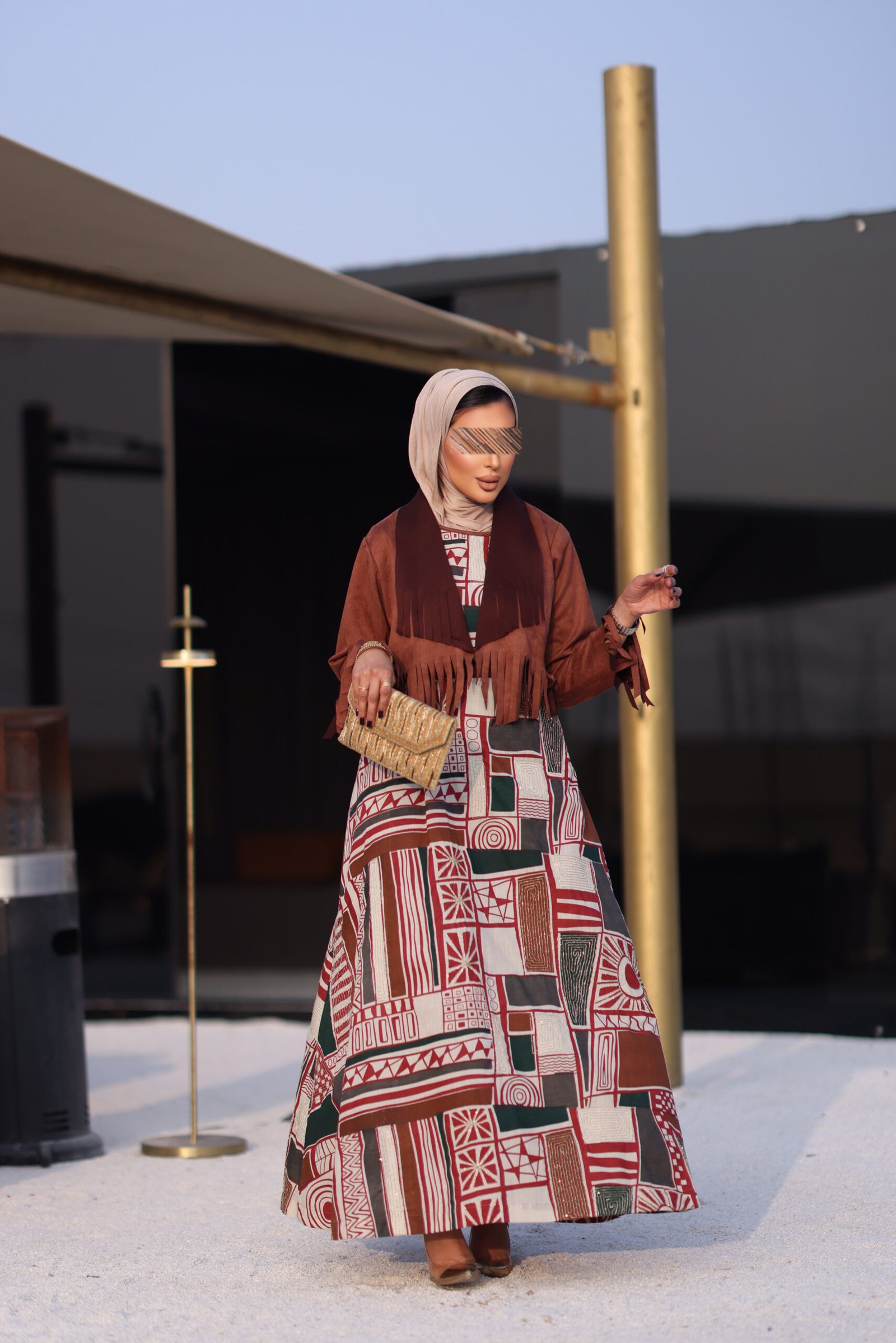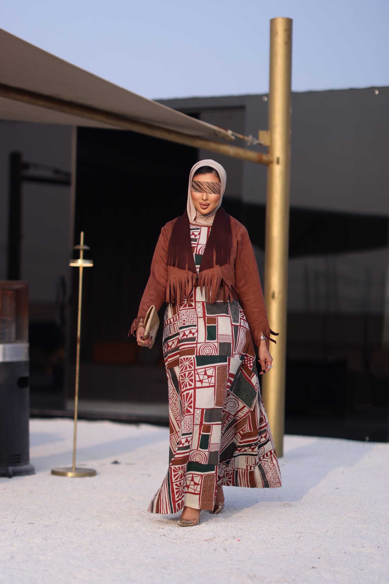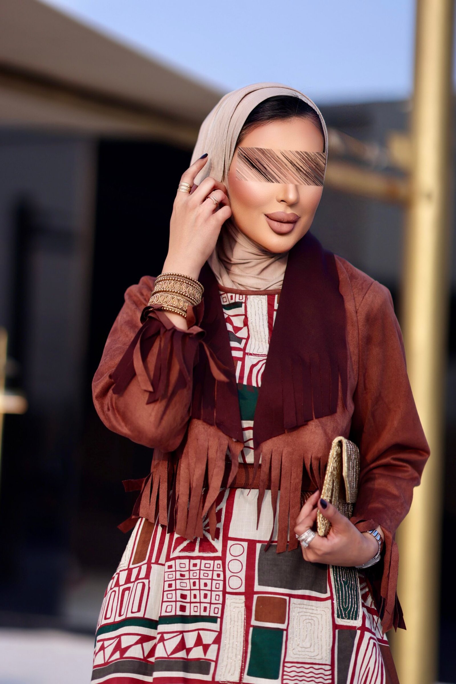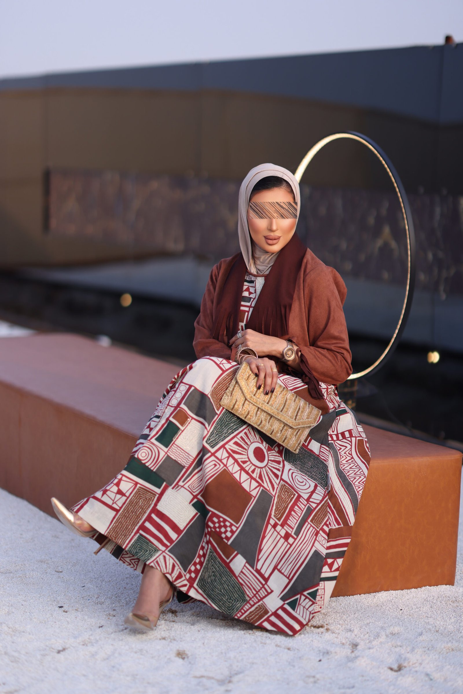 دراعه من قطعتين جاكت وفستان مطرزالقماش شاموا ولينن