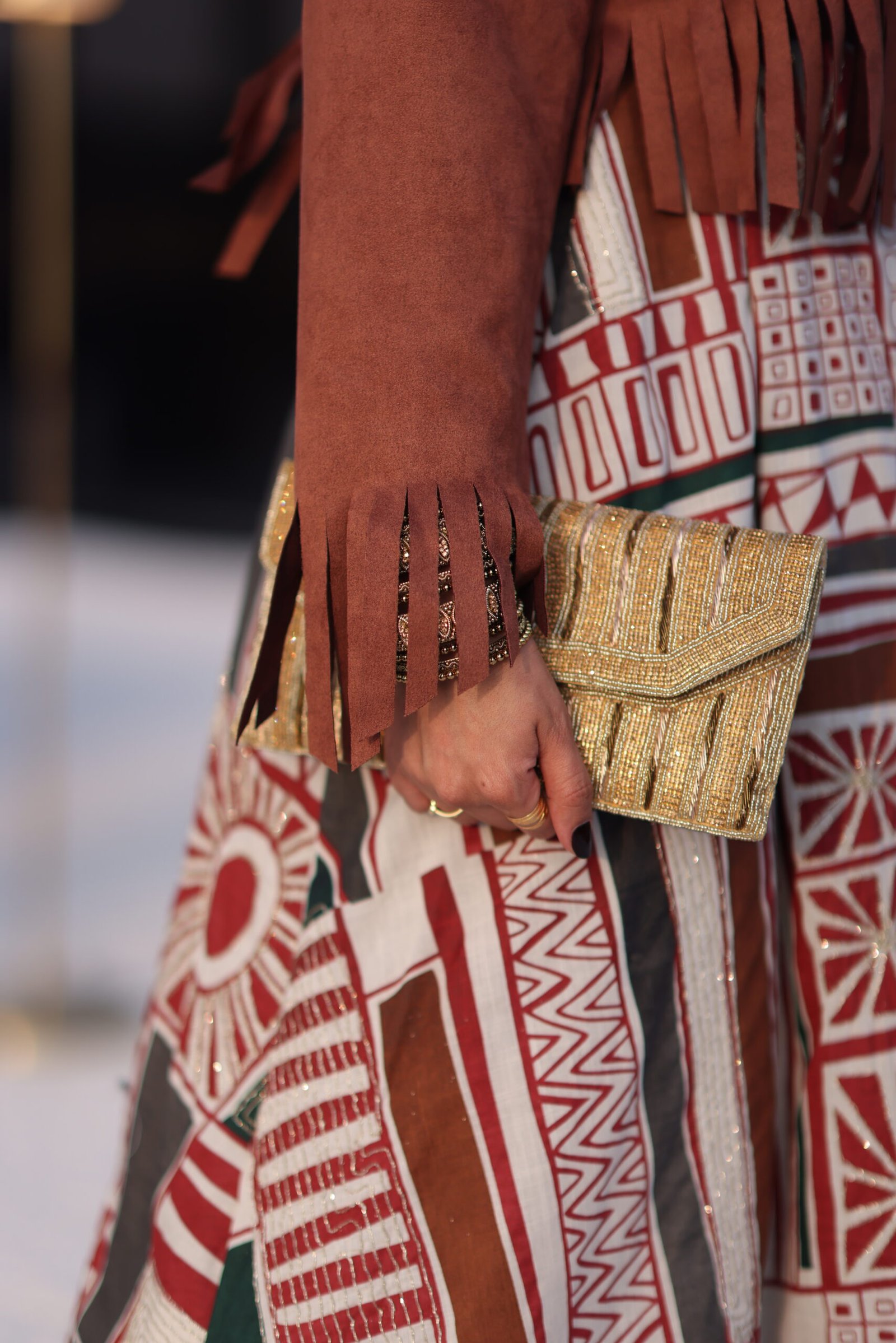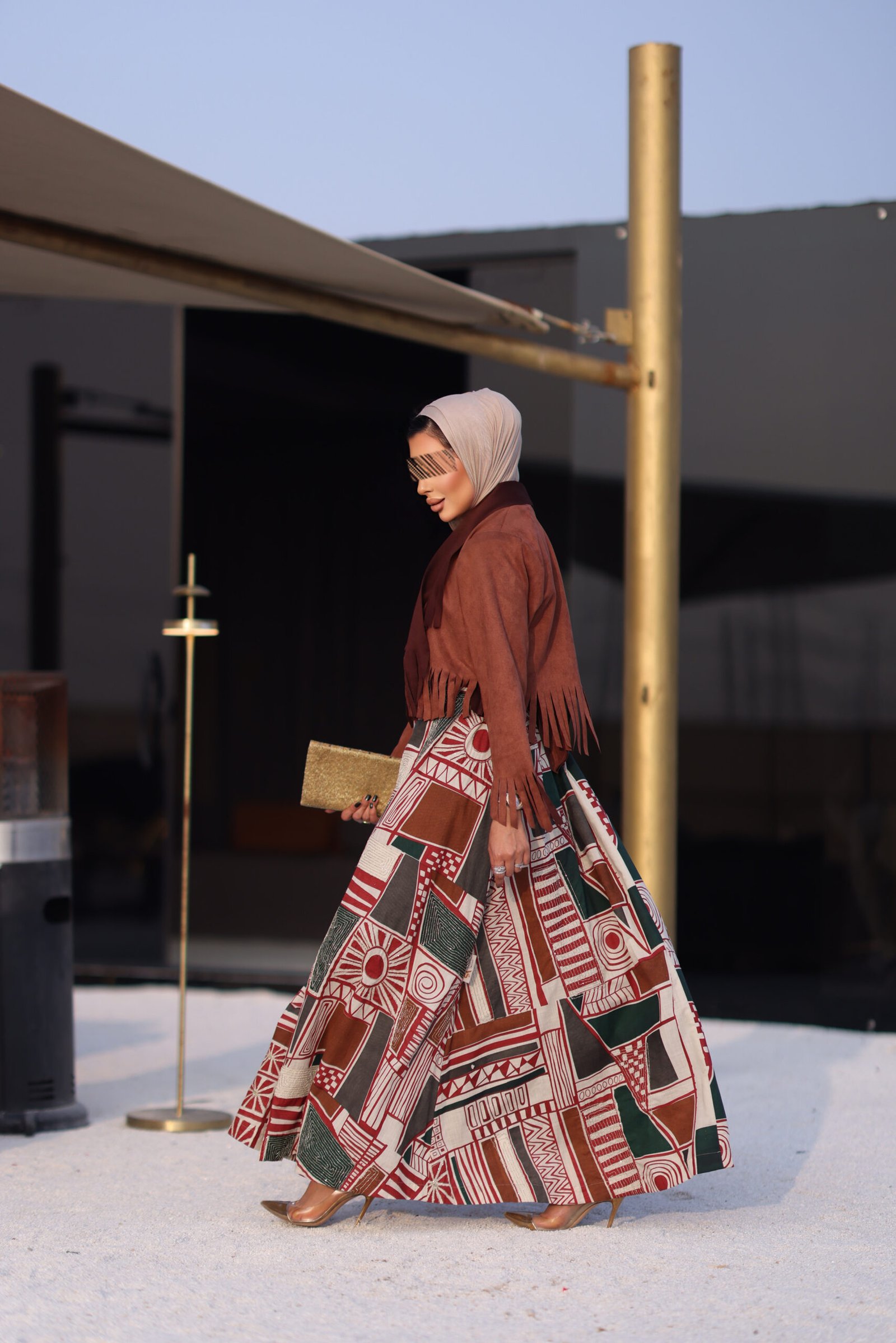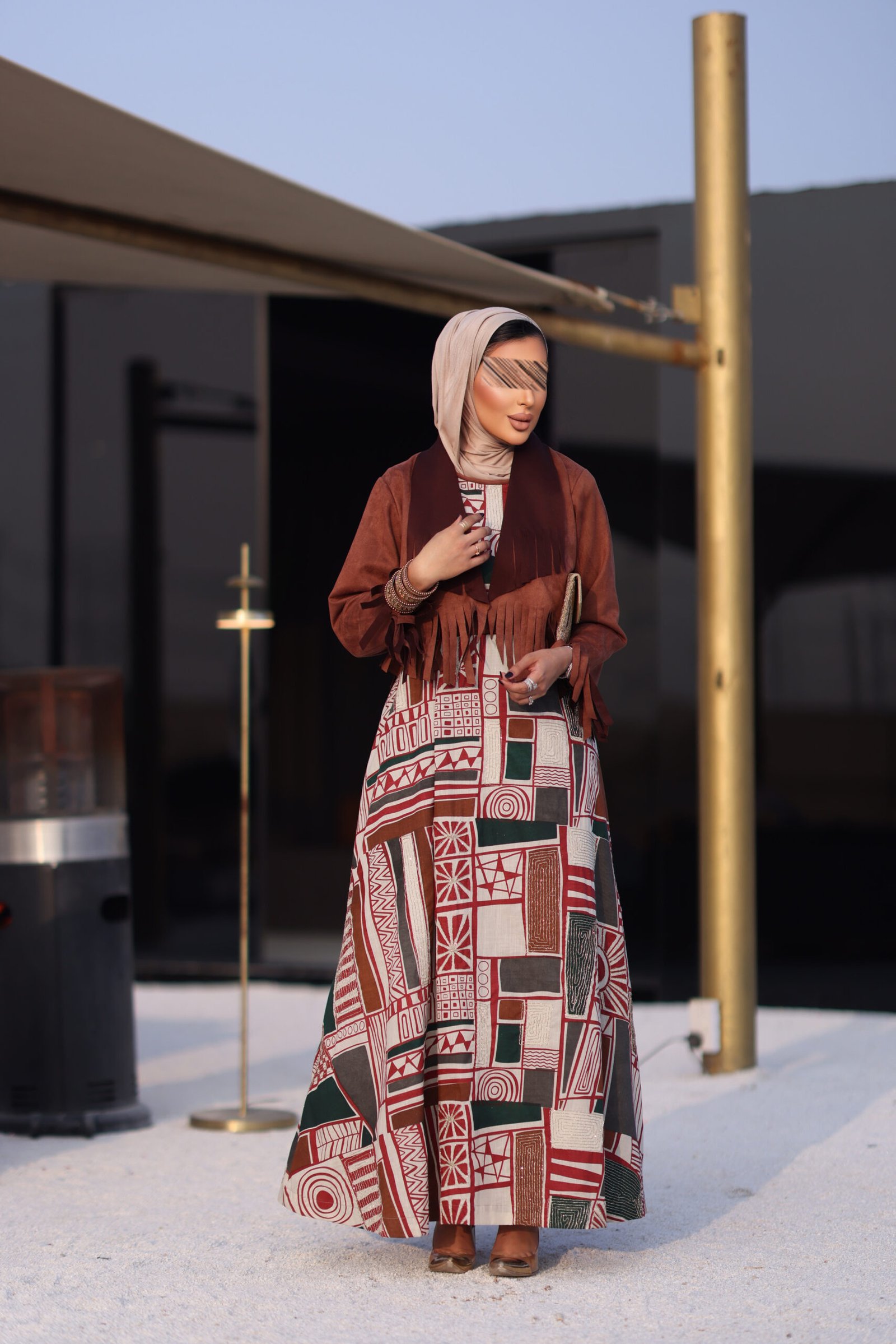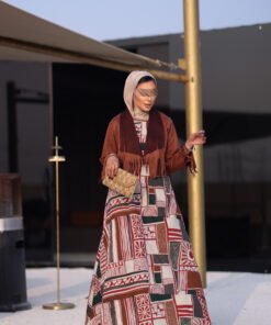 دراعه من قطعتين جاكت وفستان مطرزالقماش شاموا ولينن