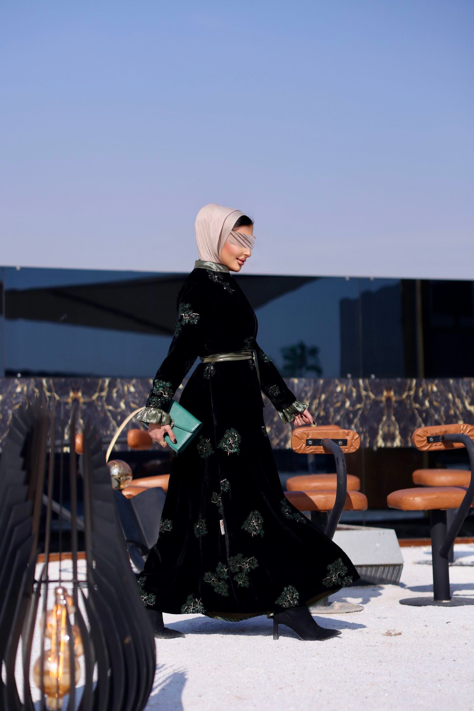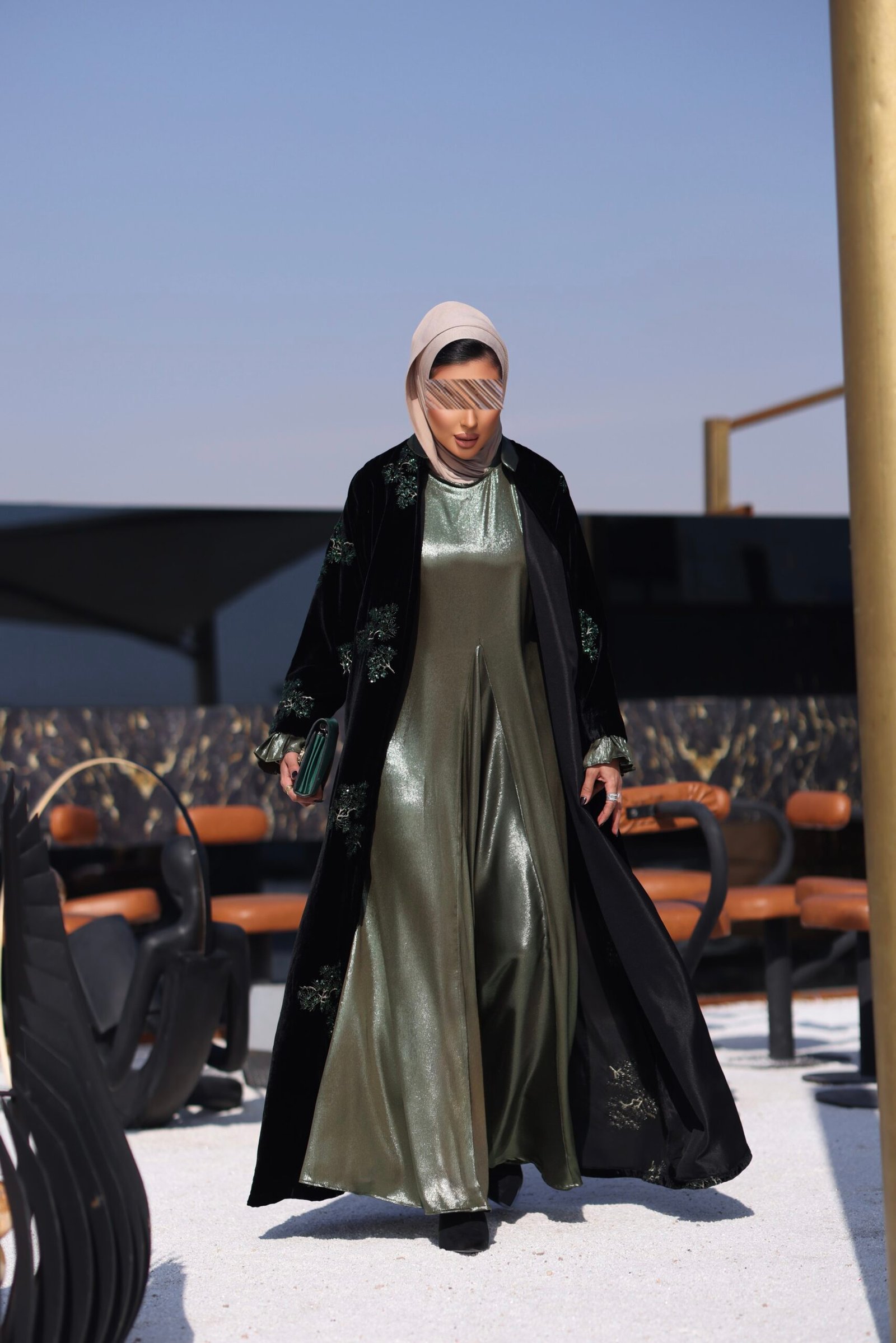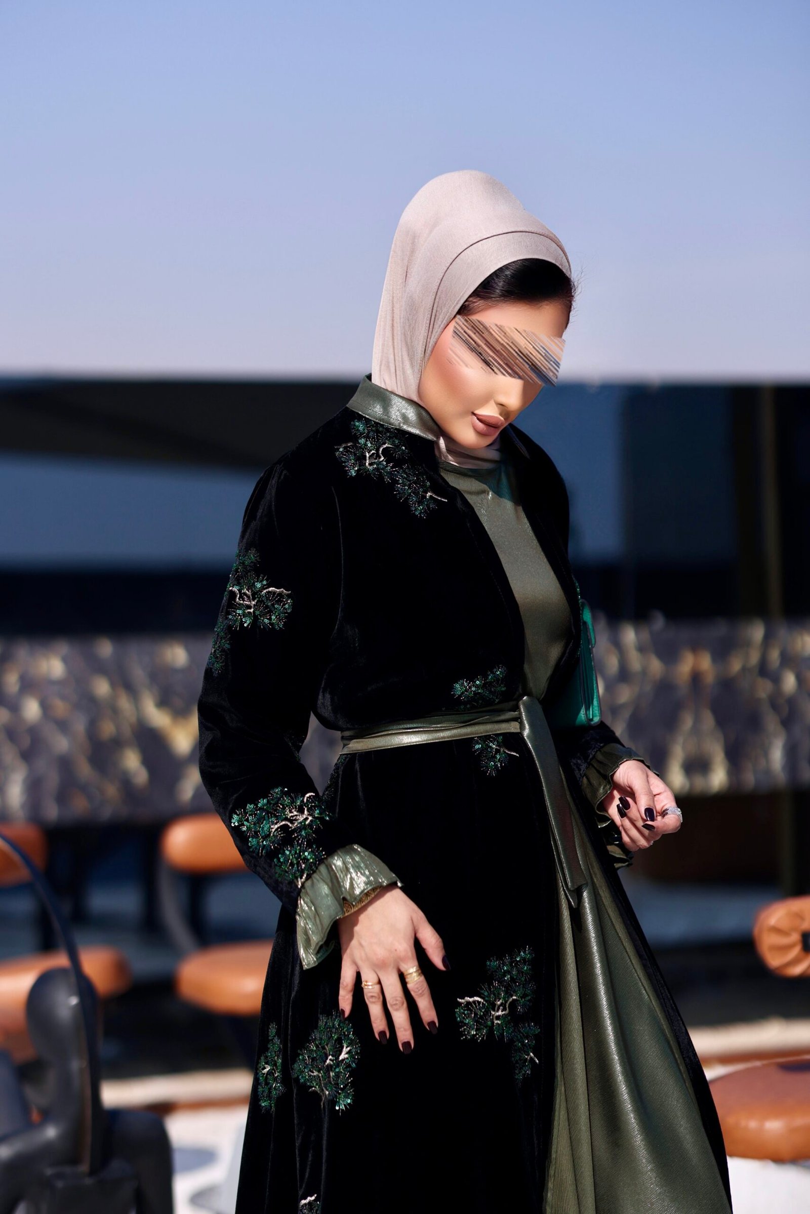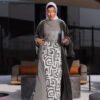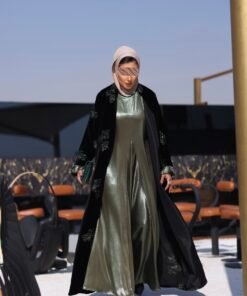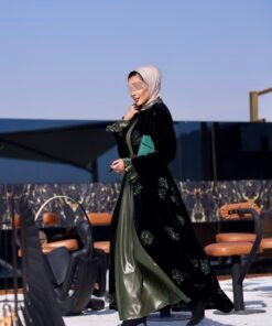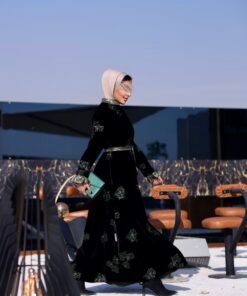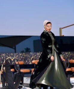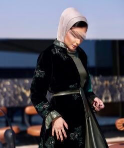 جاكت مخمل مطرز بالكامل مع فستان بقصات مع حزام