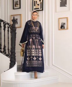 دراعه عباره عن قطعتني بشت تور وفستان بااكمام مع تطريز وحزام مفصول متوفر بلونين القماش ربيعي لينن