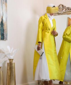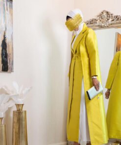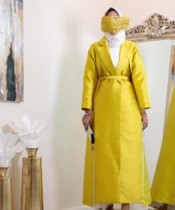 بدله من قطعتين جاكت طويل وفستان حفر مع تور متوفر بالالوان مع حزام