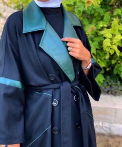 جاكت جوخ اسود مع جلد متوفر اللوان من الجلد