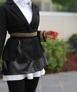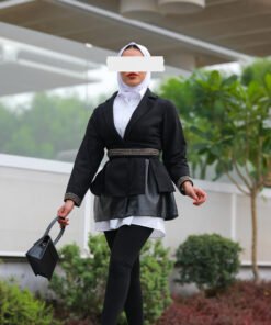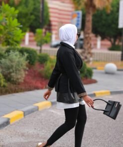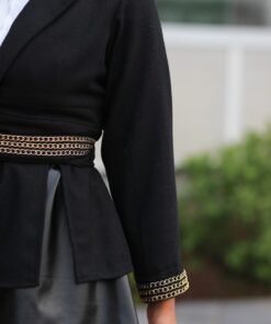 جاكت قماش جوخ وجلد مع حزام طول الجاكت المعروض 28 انش