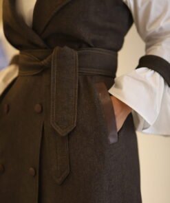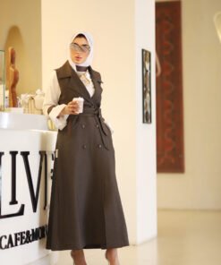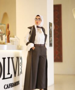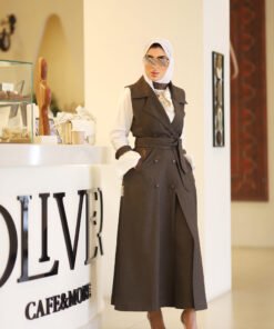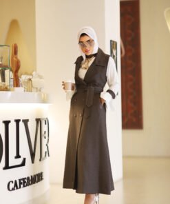 بدله من 3 قطع قميص وجاكت حفر طويل وبنطلون مع حزام القماش ربيعي