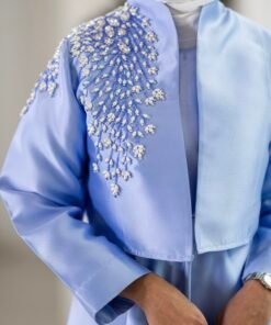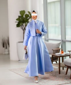 بدله من قطعتين جاكت شك يدوي عالي الجوده وفستان مع حزام متوفر بالالوان