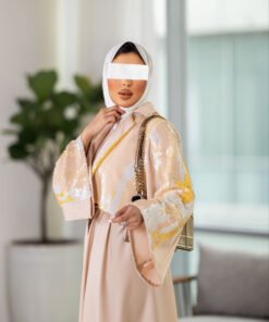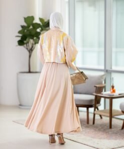بدله من قطعتين جاكت كروب لامع وفستان مع حزام