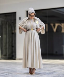 بدله عباره عن قطعين كروب حفر ودراعه كلوش مع بروش وحزام جلد القماش الهندي عالي الجوده