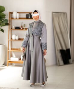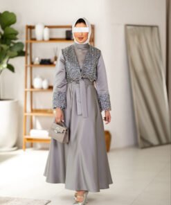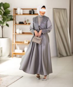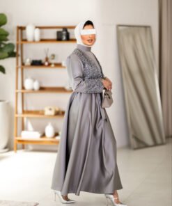 بدله من قطعين جاكت مع شك وفستان دبل كلوش وحزام متوفره بالالوان