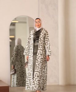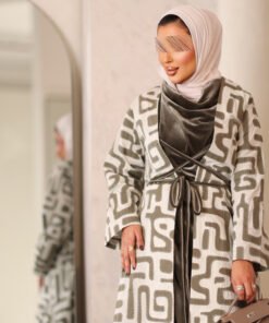 البدله عباره عن قطعتين جاكت مطرز بالكامل مع فستان مخمل بحزام ثابت