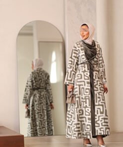 البدله عباره عن قطعتين جاكت مطرز بالكامل مع فستان مخمل بحزام ثابت