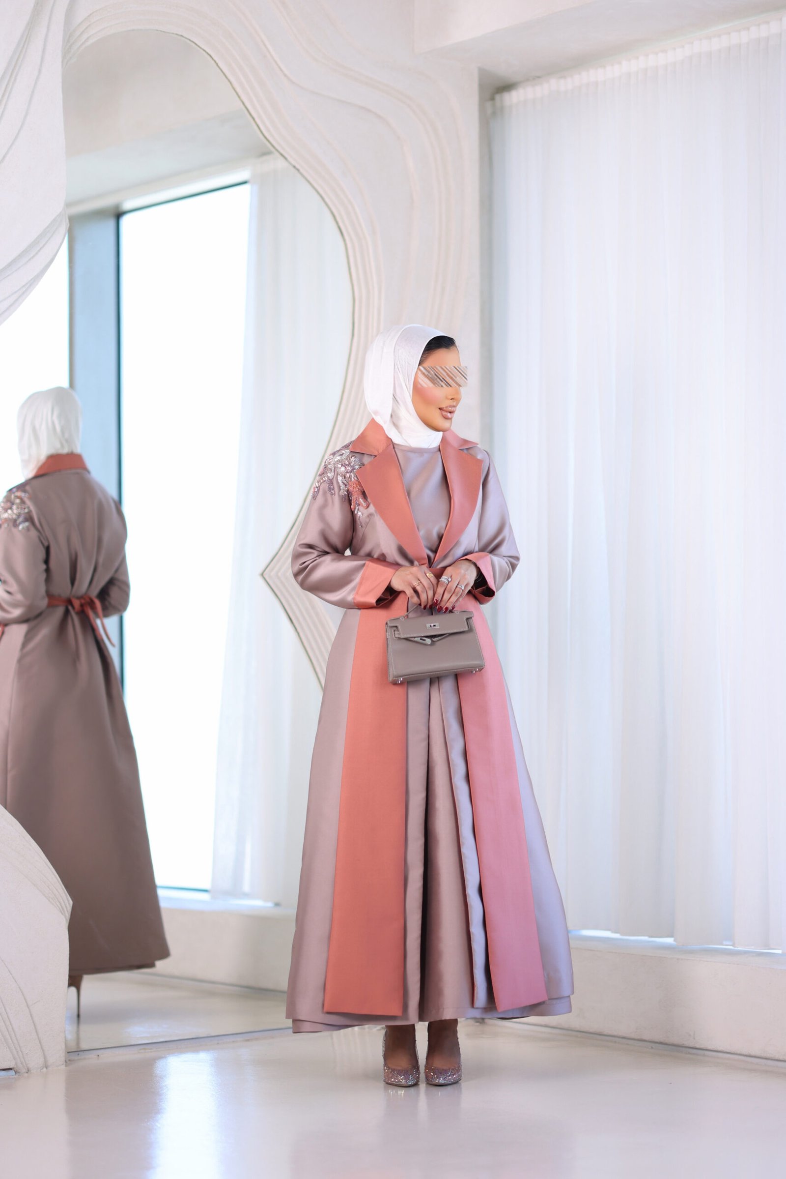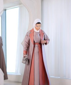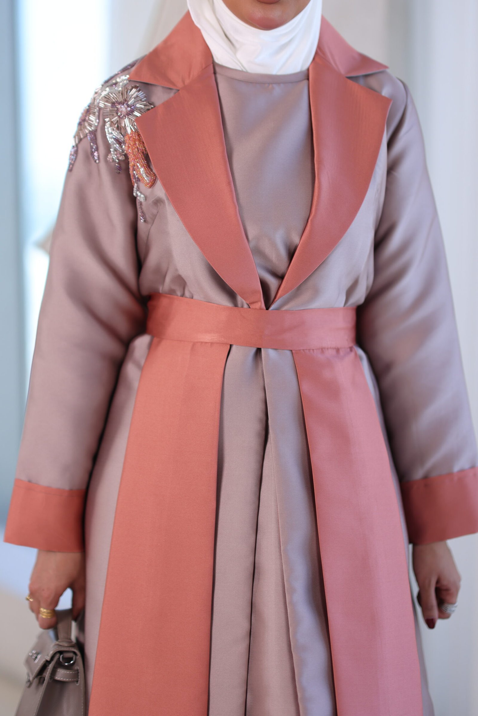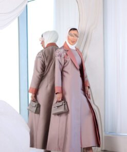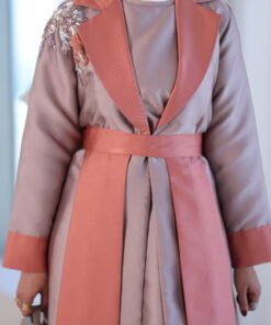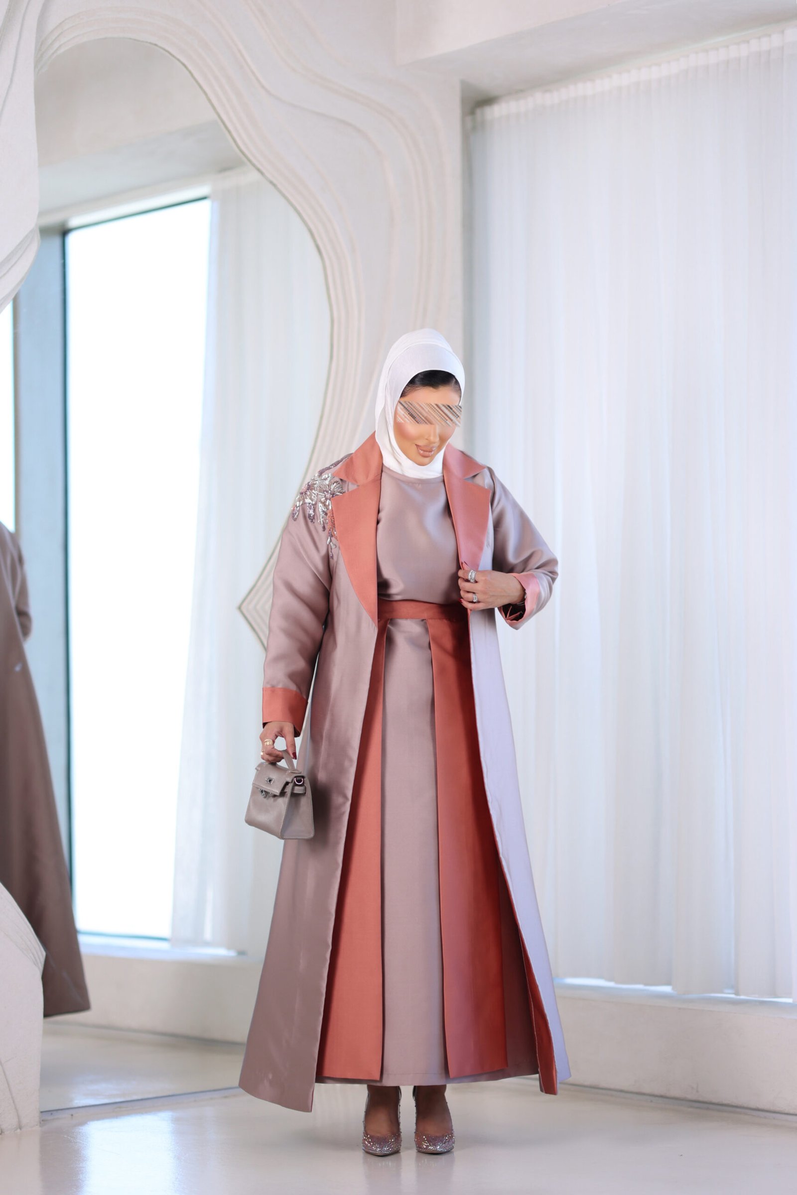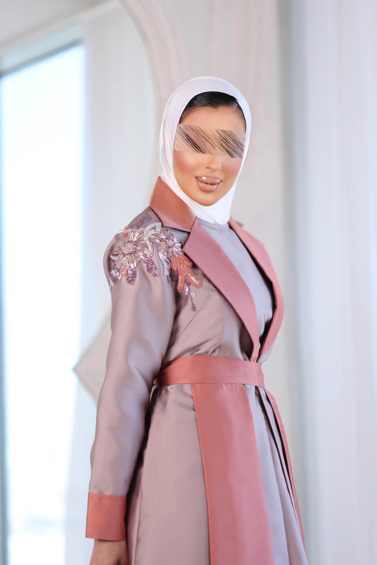 بدله من 3 قطع جاكت طول مع شك وفستان وحزام بقصات