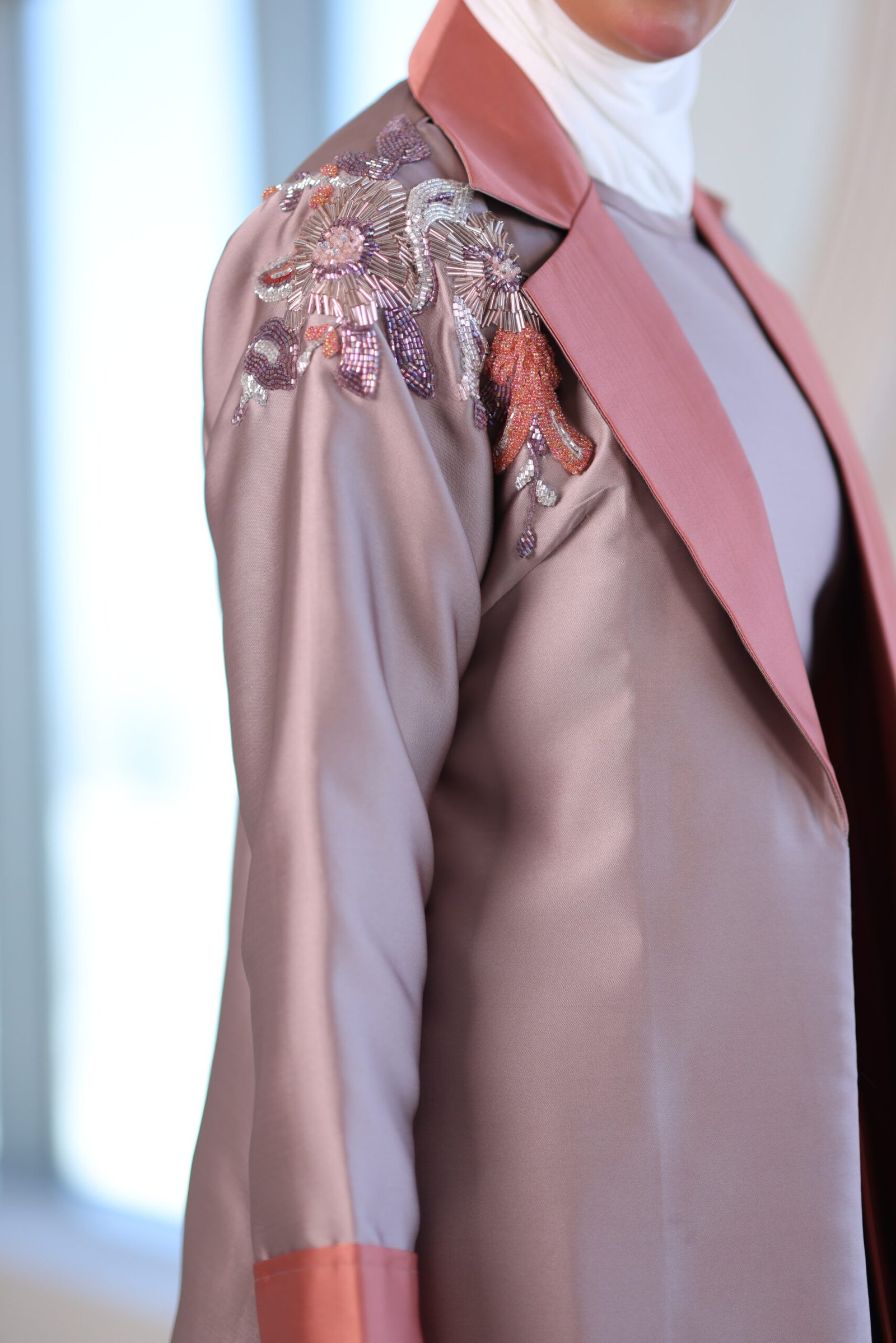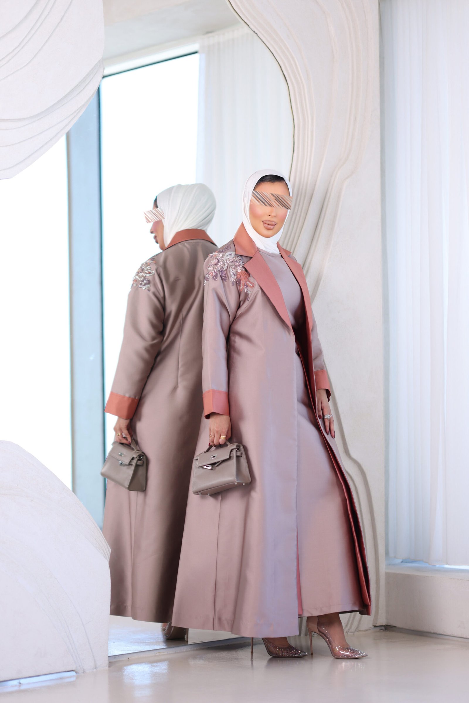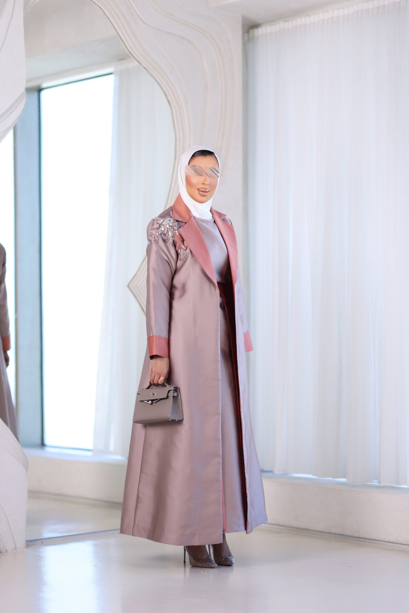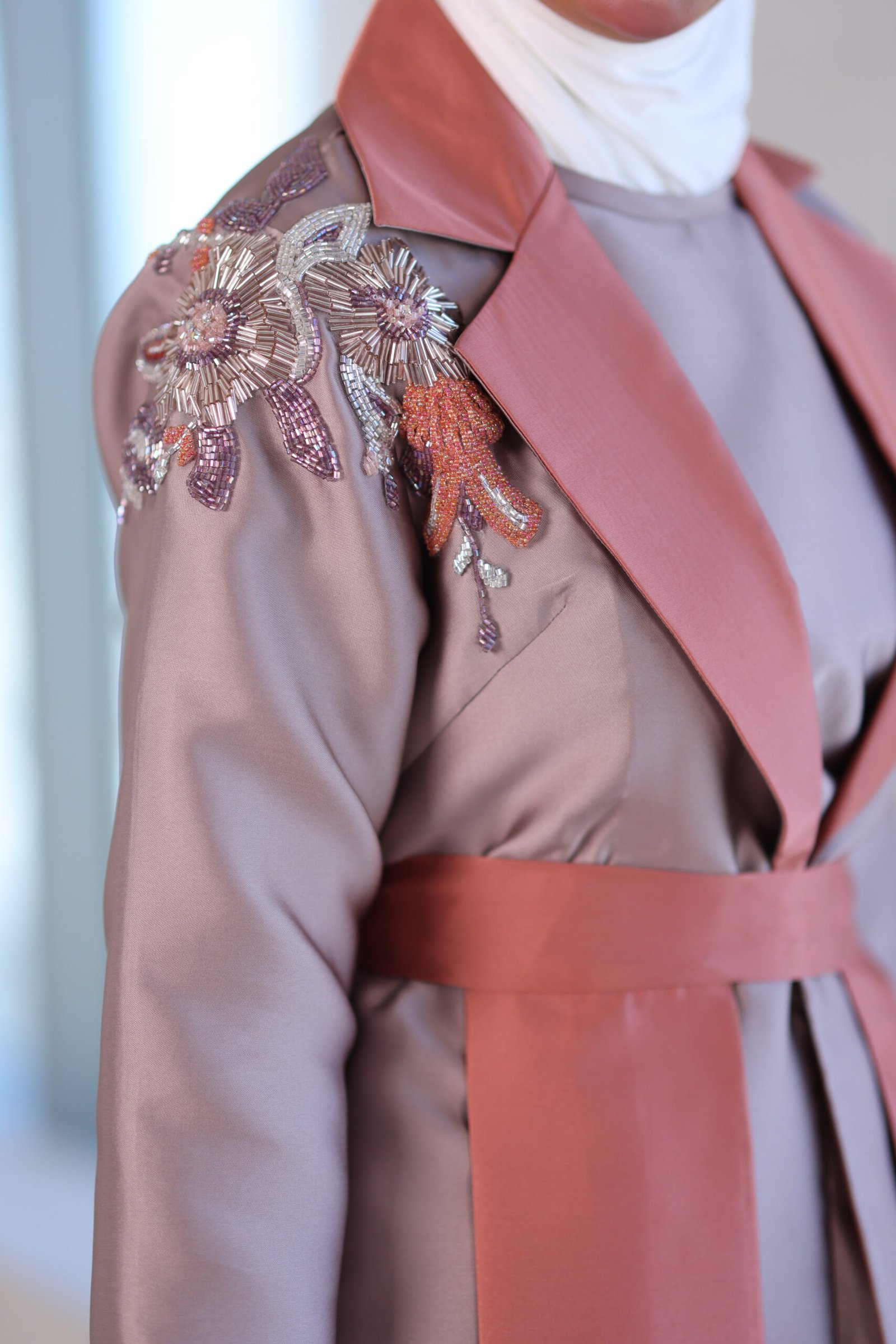 بدله من 3 قطع جاكت طول مع شك وفستان وحزام بقصات