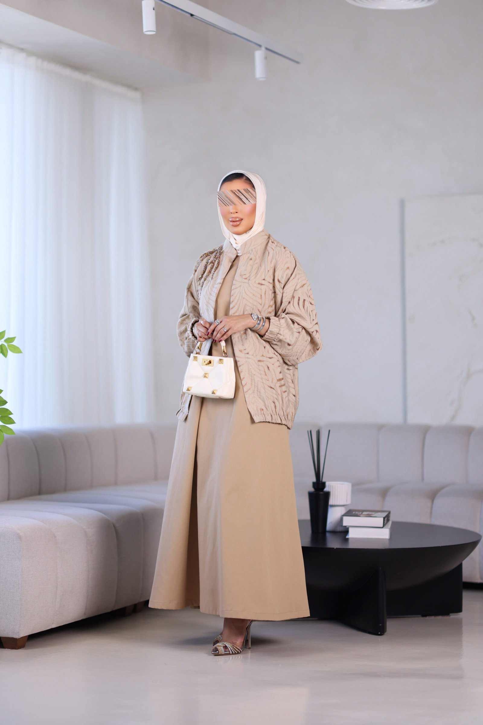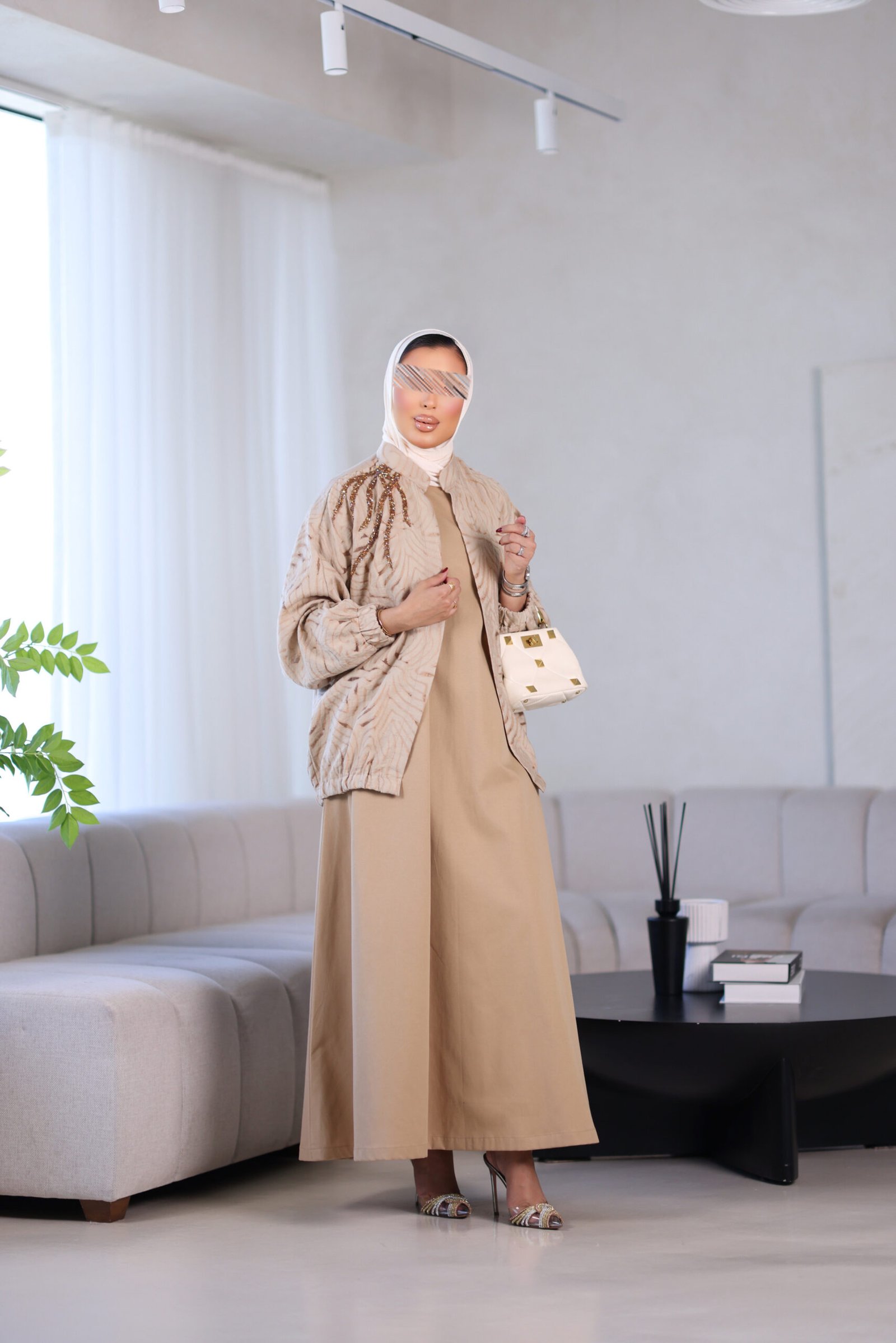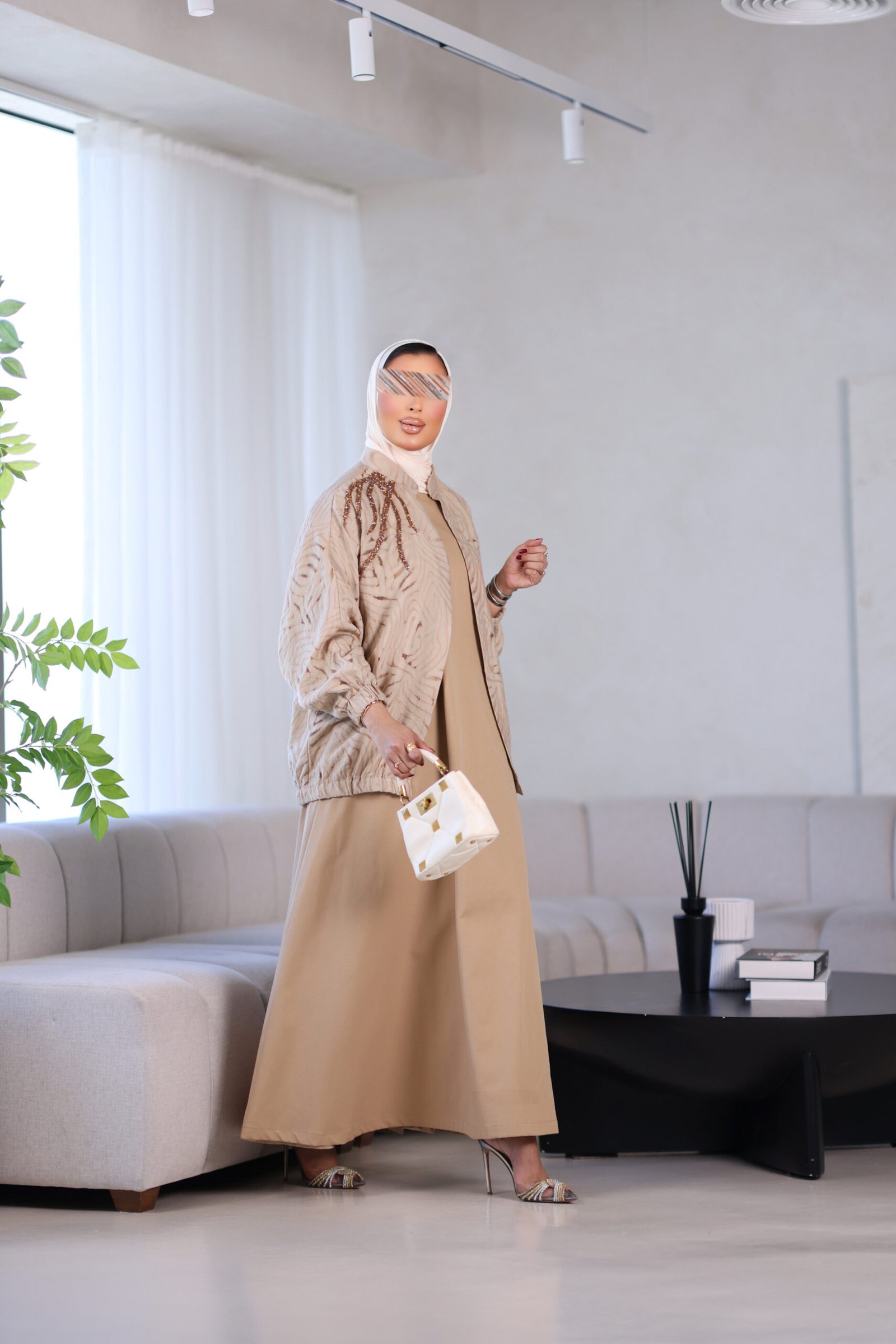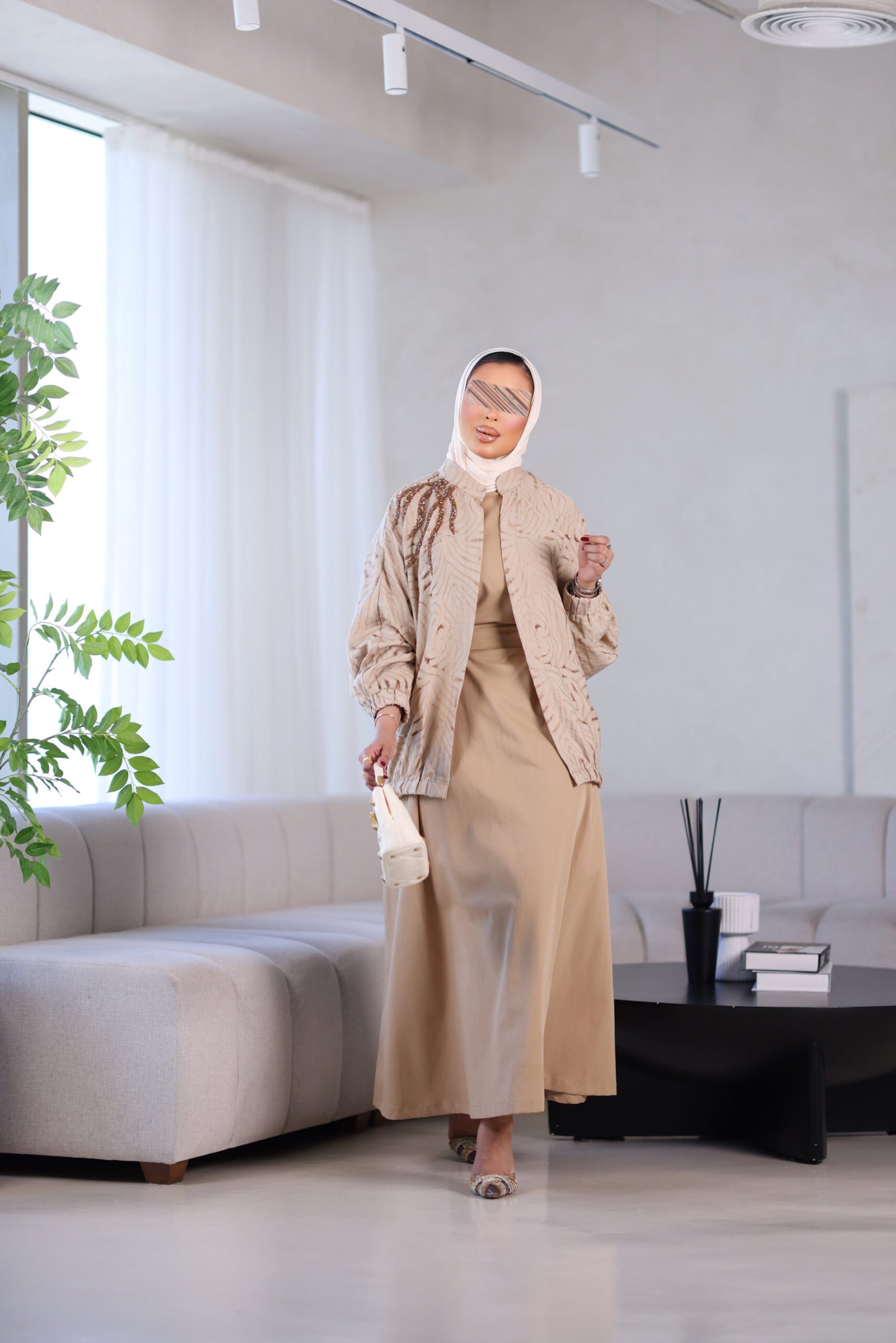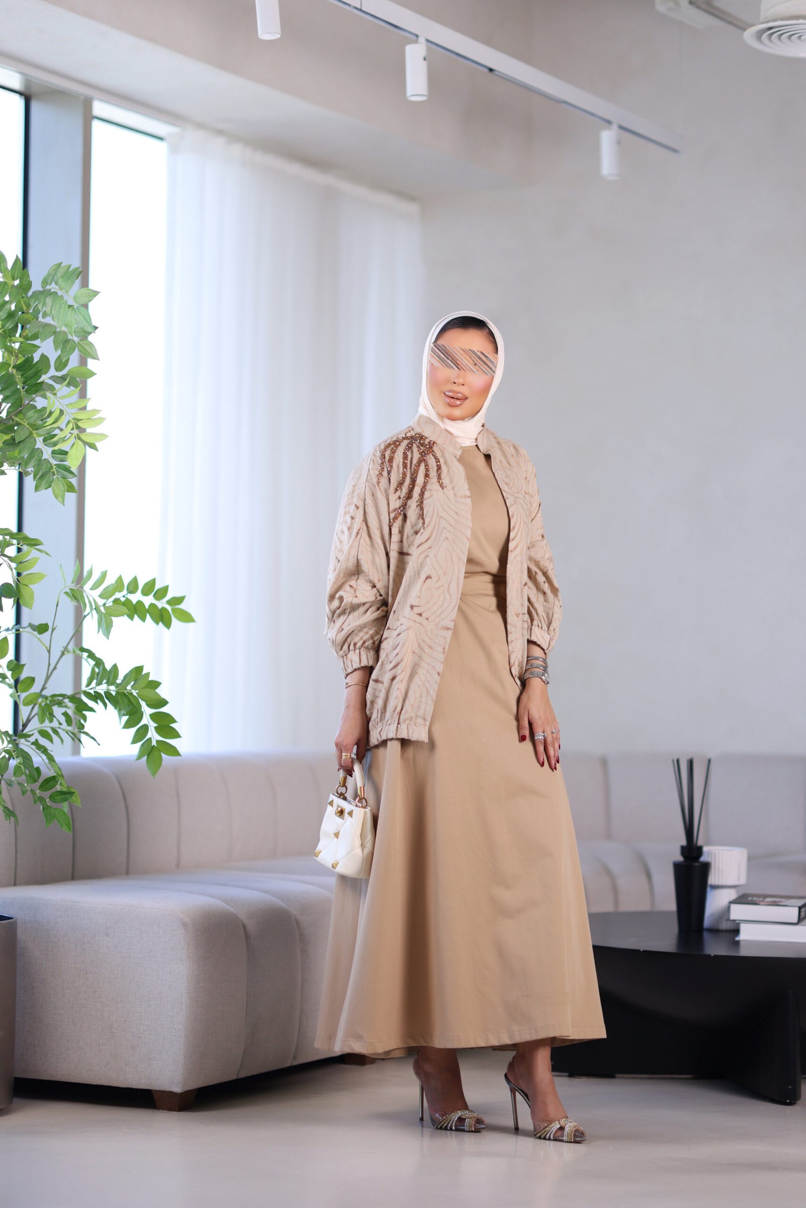 بدله من قطعتين جاكت مع شك وفستان وحزام