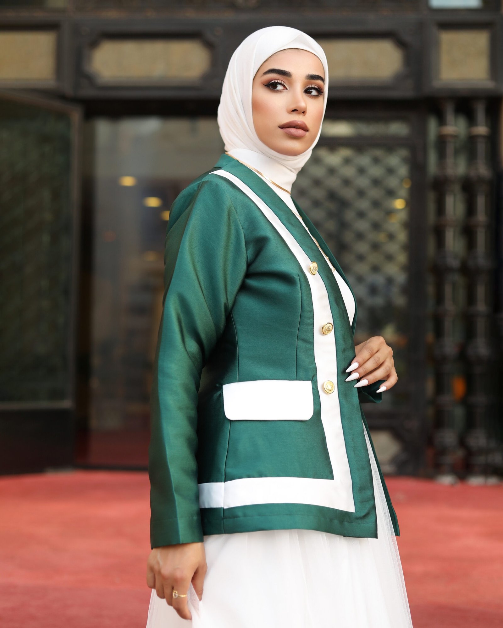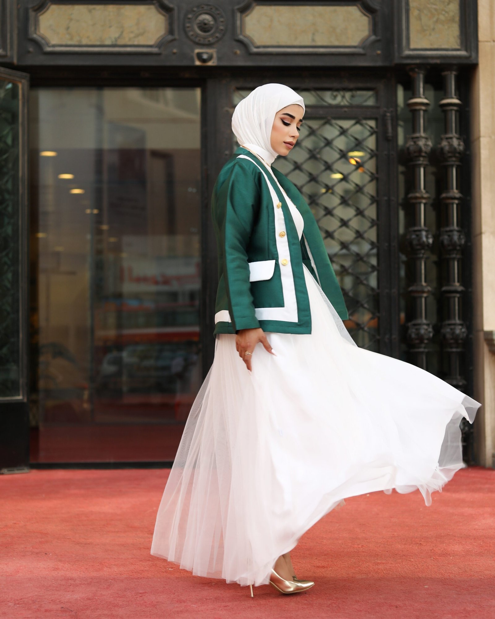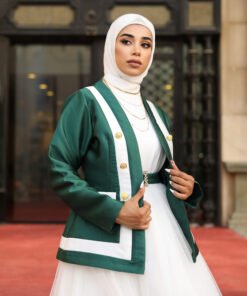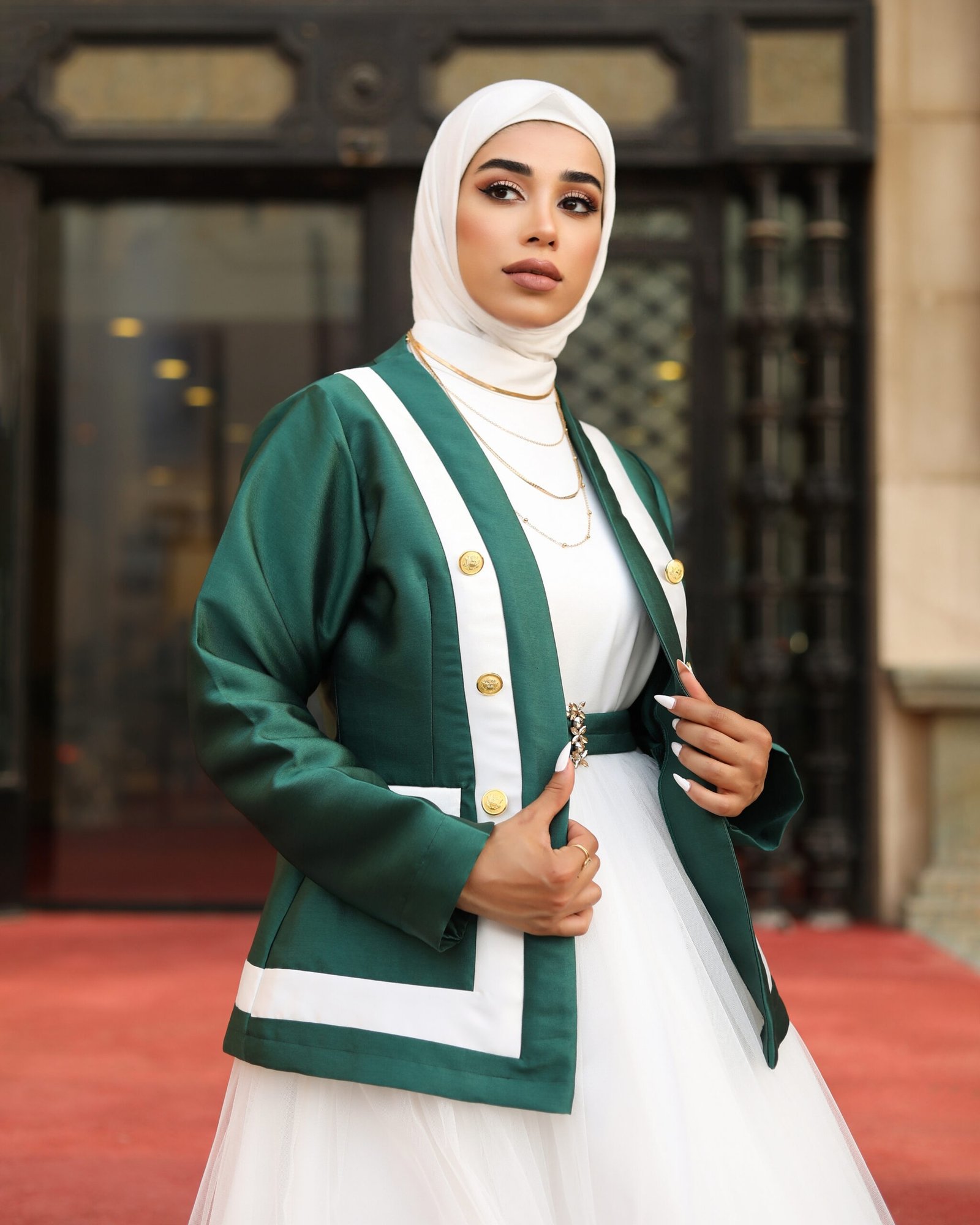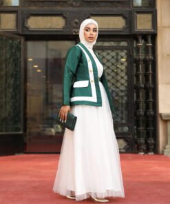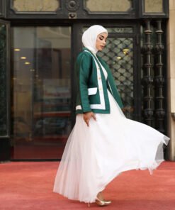 بداه من قطعتين جاكت وفستان مع تور وحزام كريستال ممكن اختيار لون الجاكت