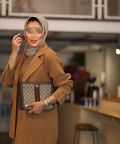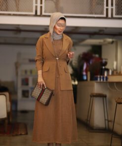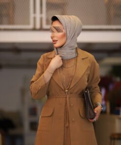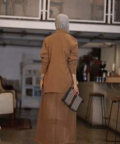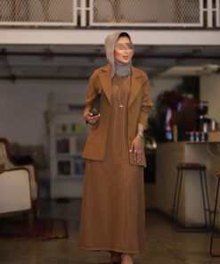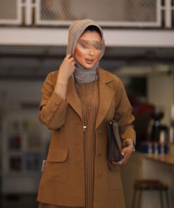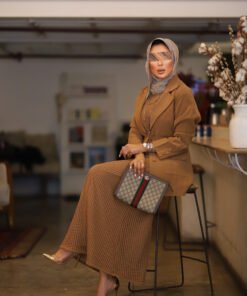 بدله من قطعتين جاكت مع فستان شبك مبطن مع حزام