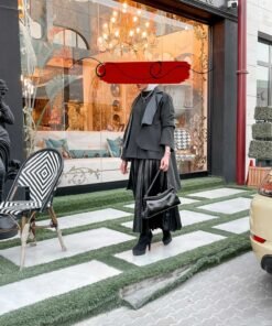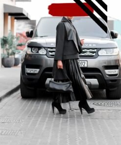 بدله من قطعتين جاكت مع جلد وتنوره جلد بلسيه طول الجاكت من الامام 27 انش ومن الخلف 35 انش