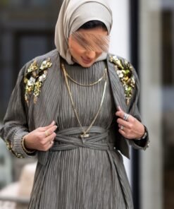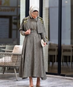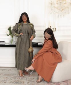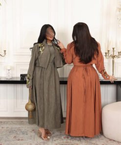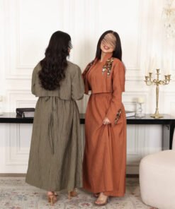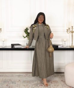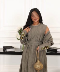 دراعه من قطعتين جاكت كروب وفستان مع شك يدوي عالي الجوده مع حزام القماس صيفي