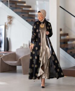 التوصيل خلال 25 يوم دراعه من قطعتين جاكت قماش مطرز بالكامل مع فستان