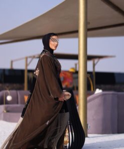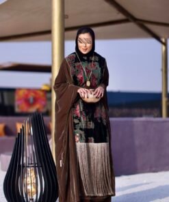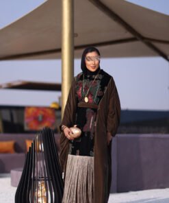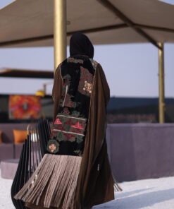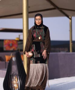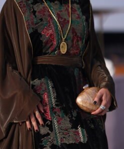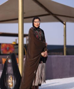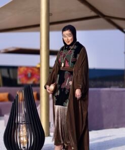 دراعه فري سايز مع تطريز مخمل وهدب حزام داخلي