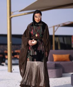 دراعه فري سايز مع تطريز مخمل وهدب حزام داخلي