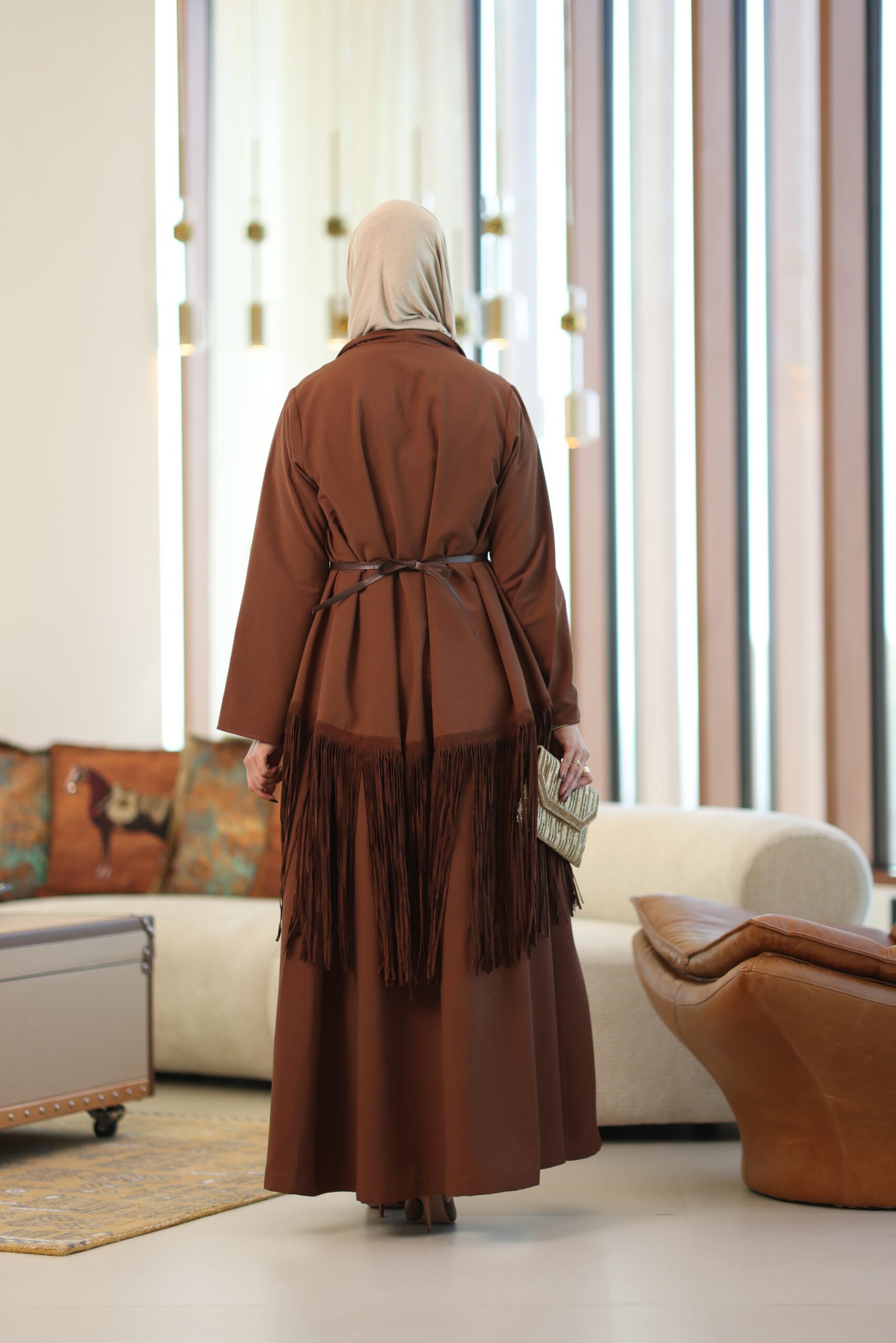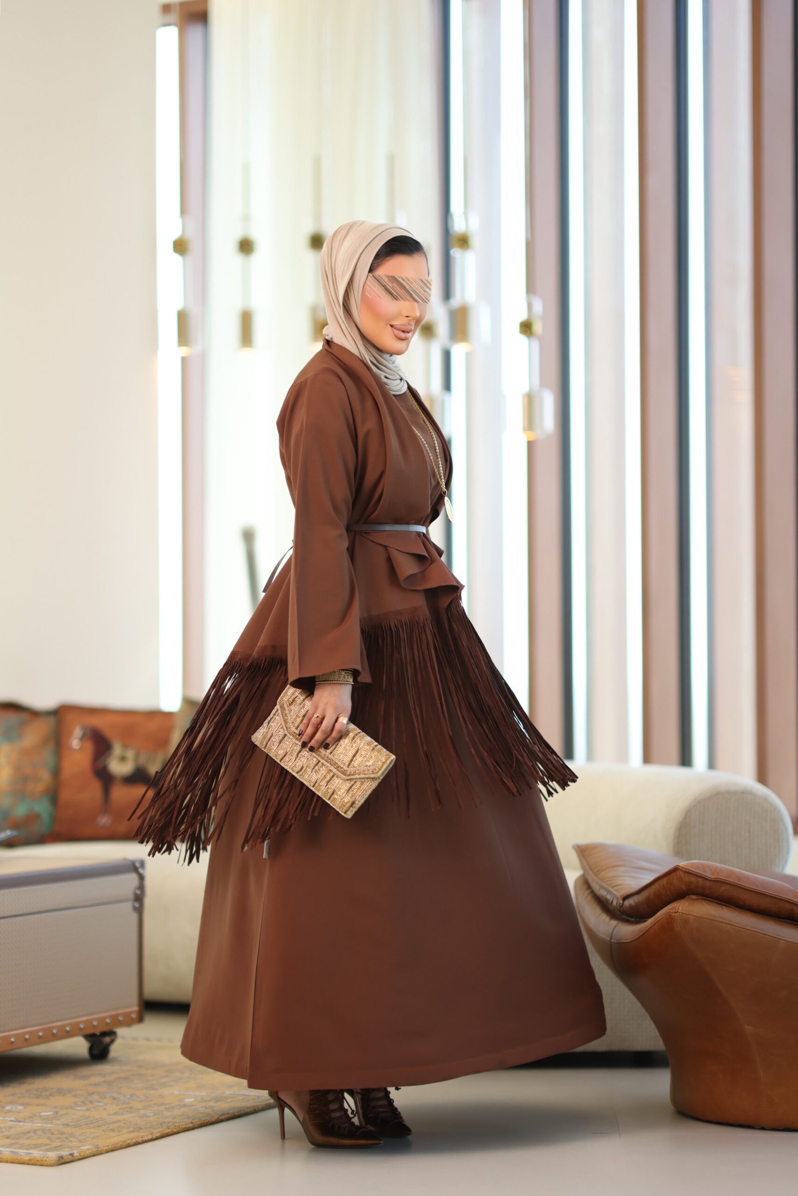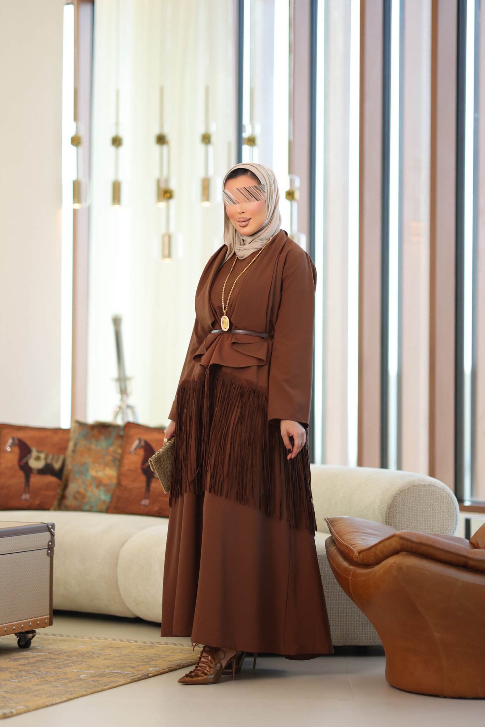 بدله من 3قطع جاكت مع هدب وفستان حفر وحزام جلد