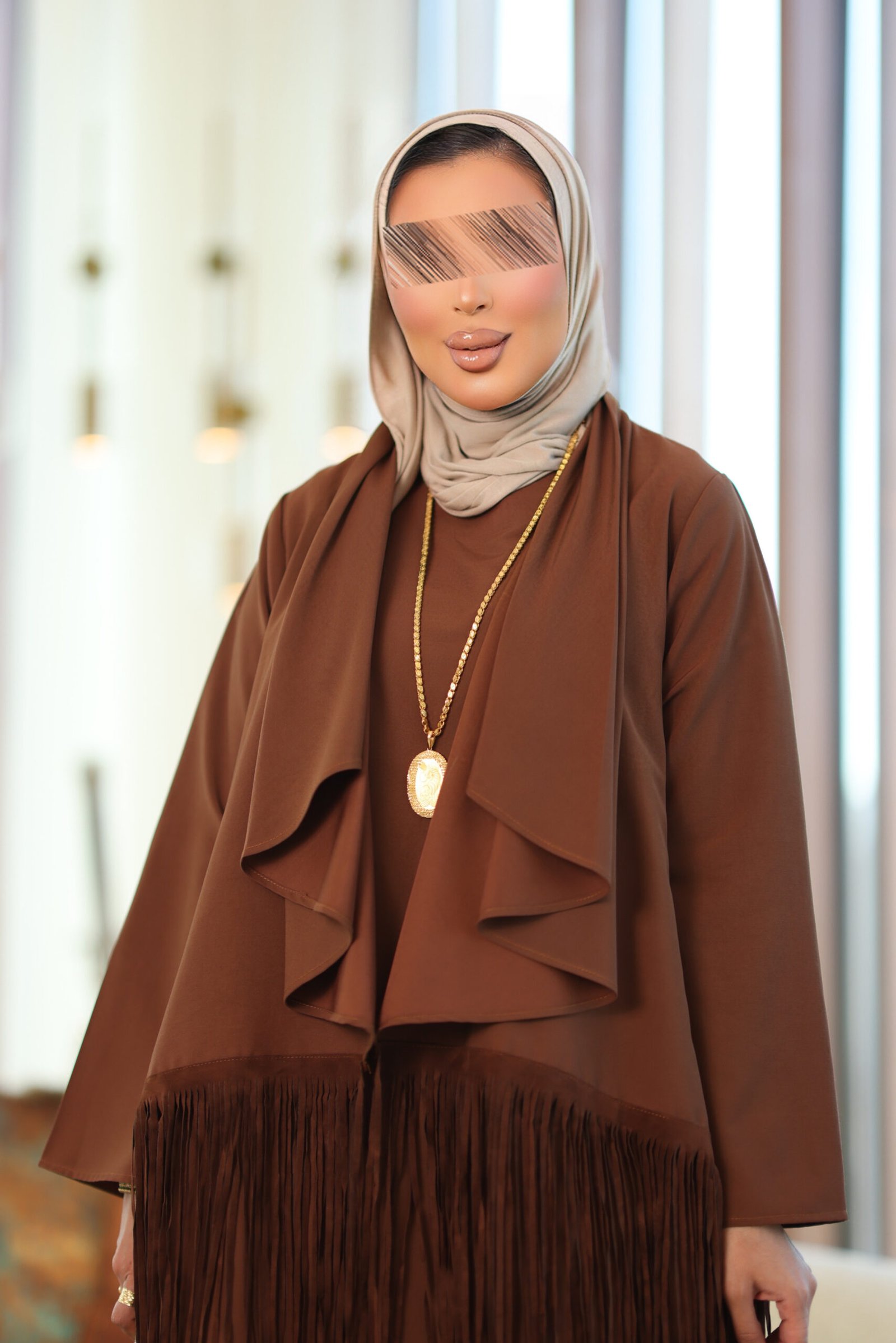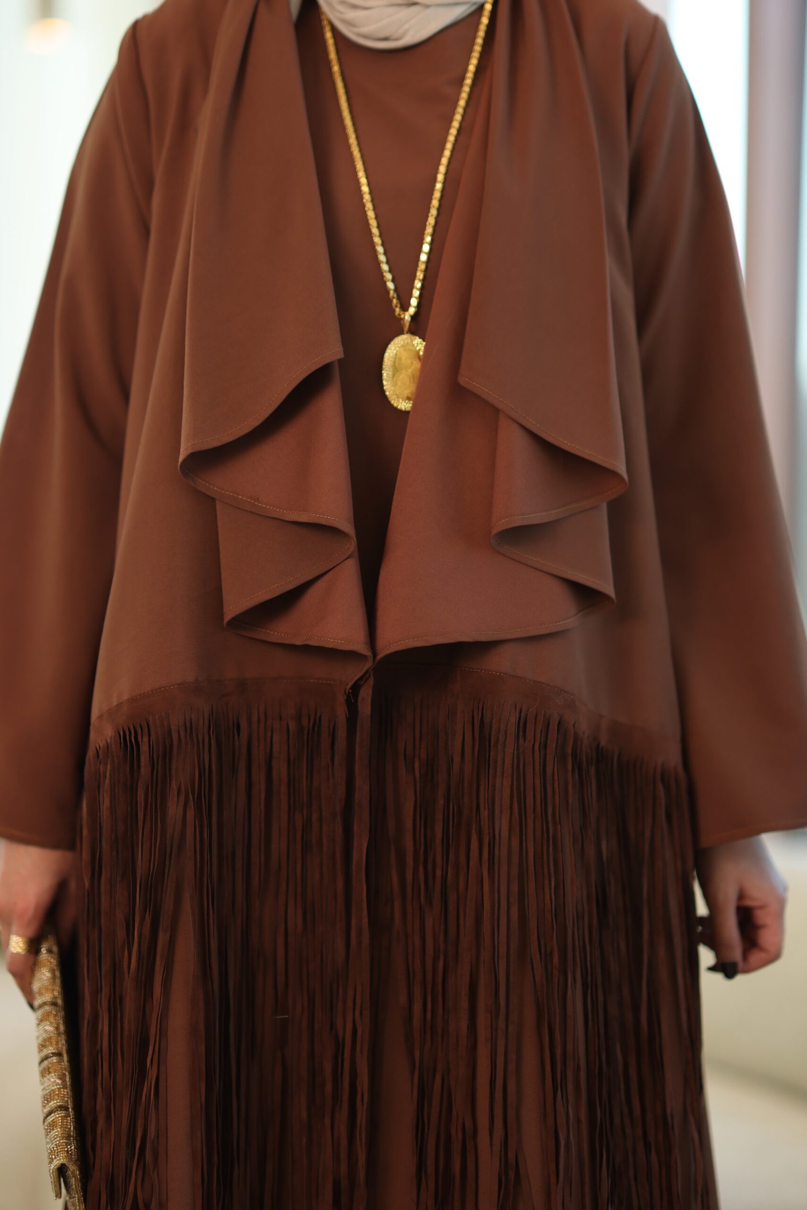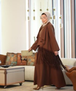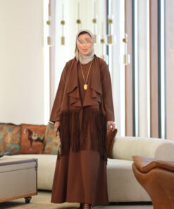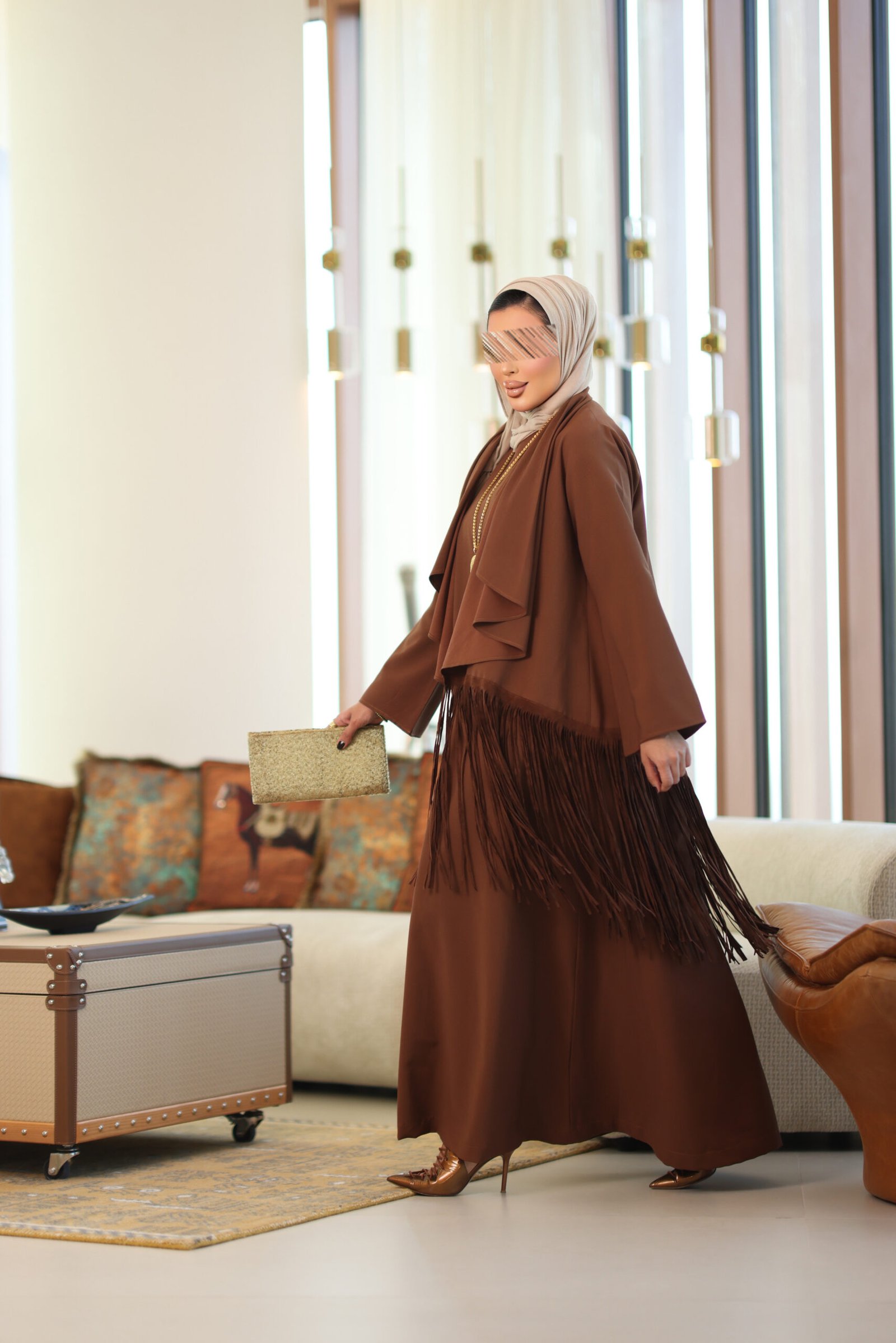 بدله من 3قطع جاكت مع هدب وفستان حفر وحزام جلد