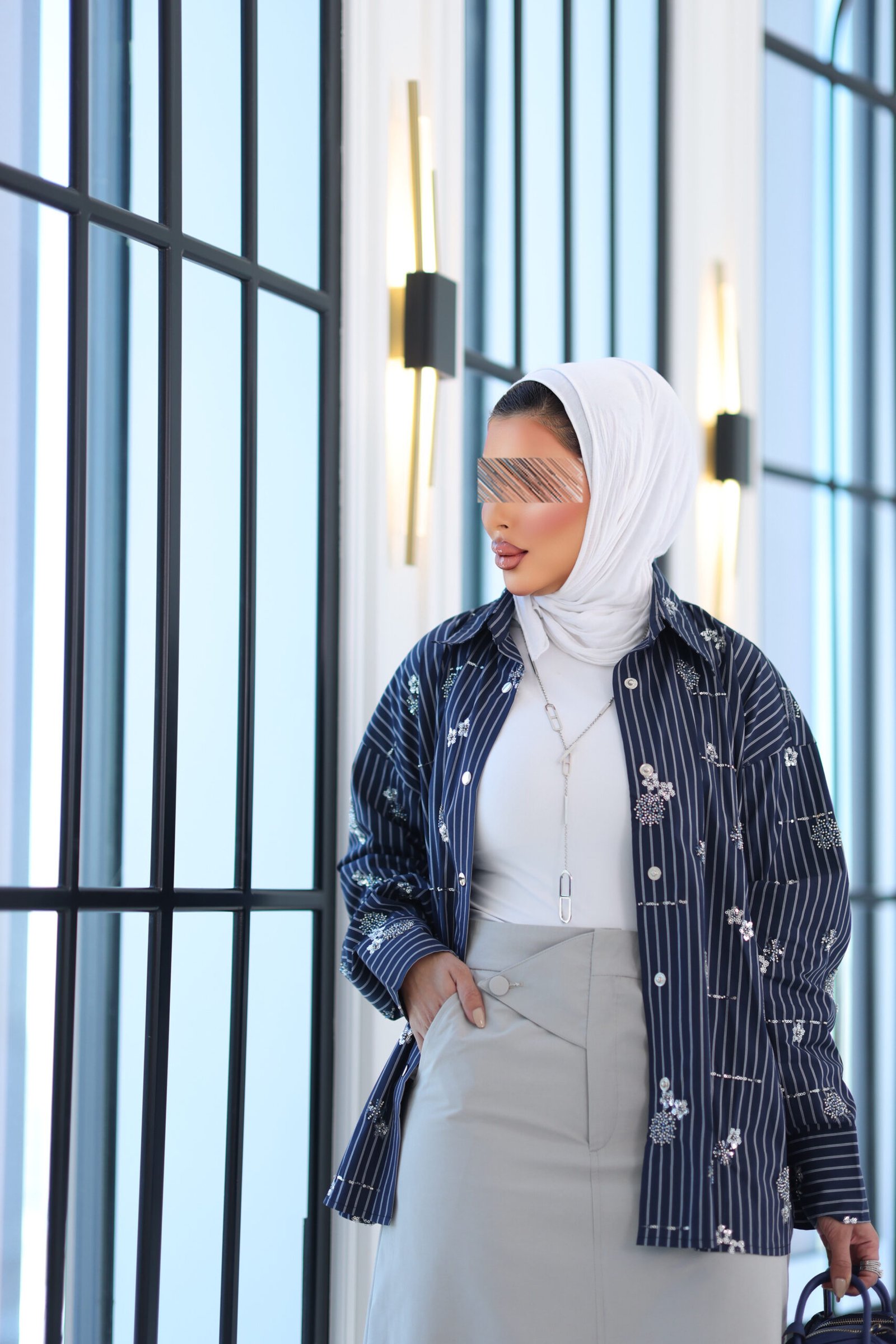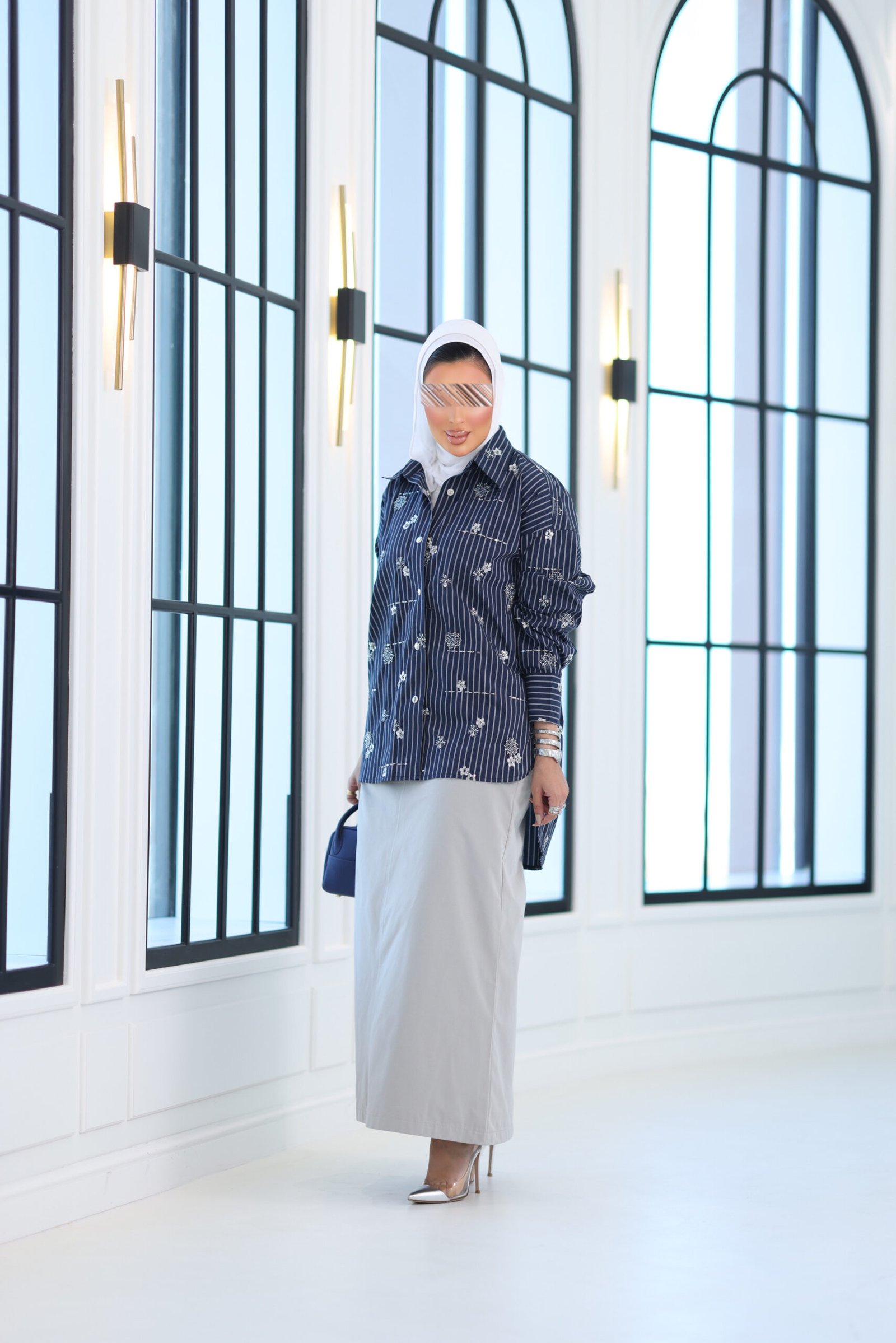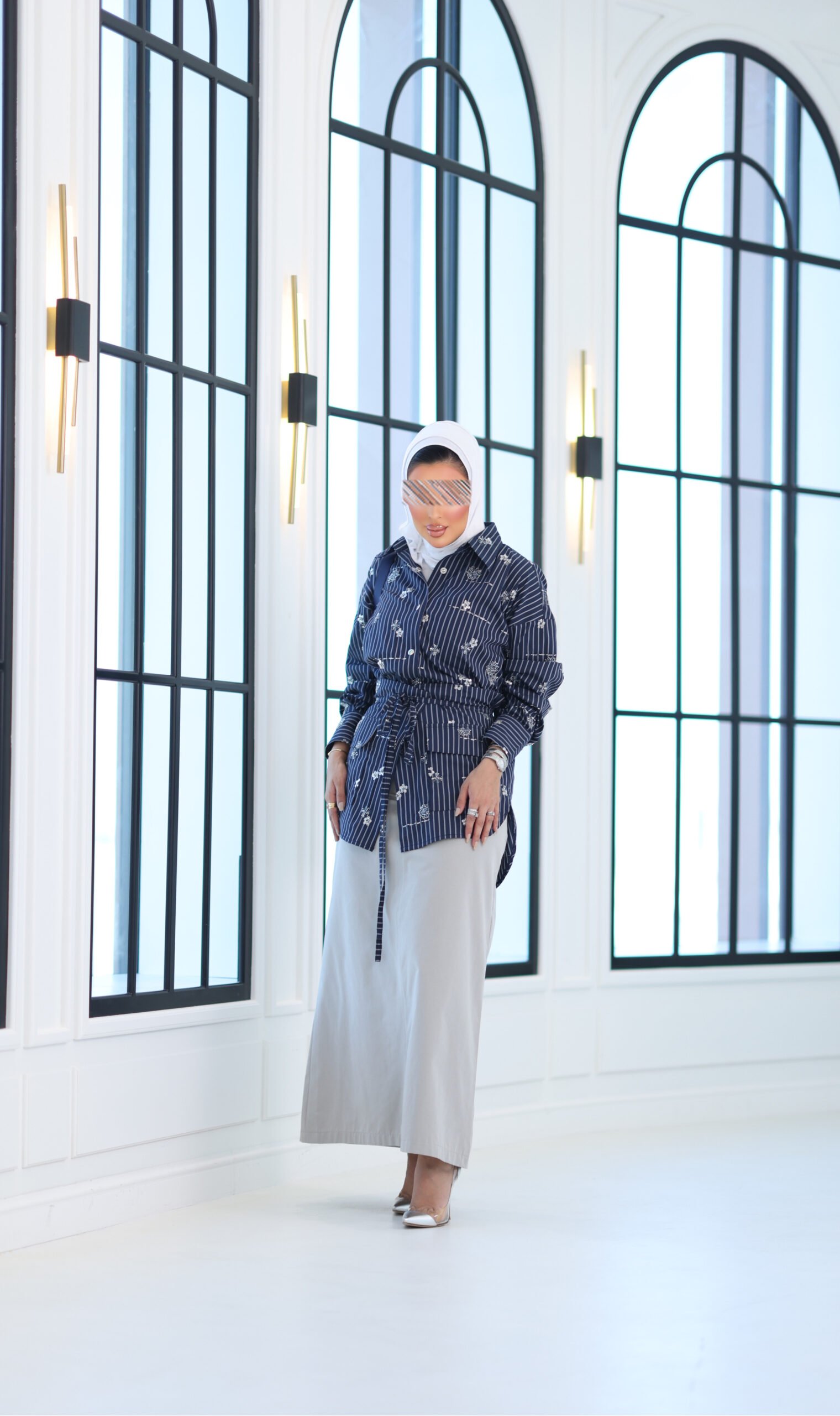 قميص قصه فري سايز عباره عن قطعتين القماش صيفي شك بالكامل مع تنوره او بنطلون