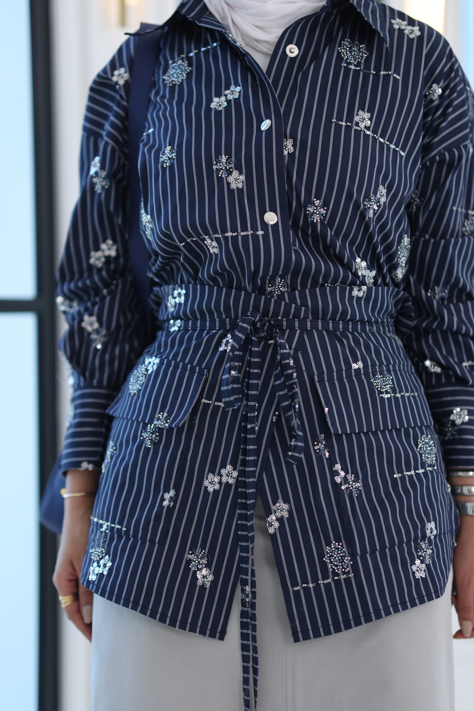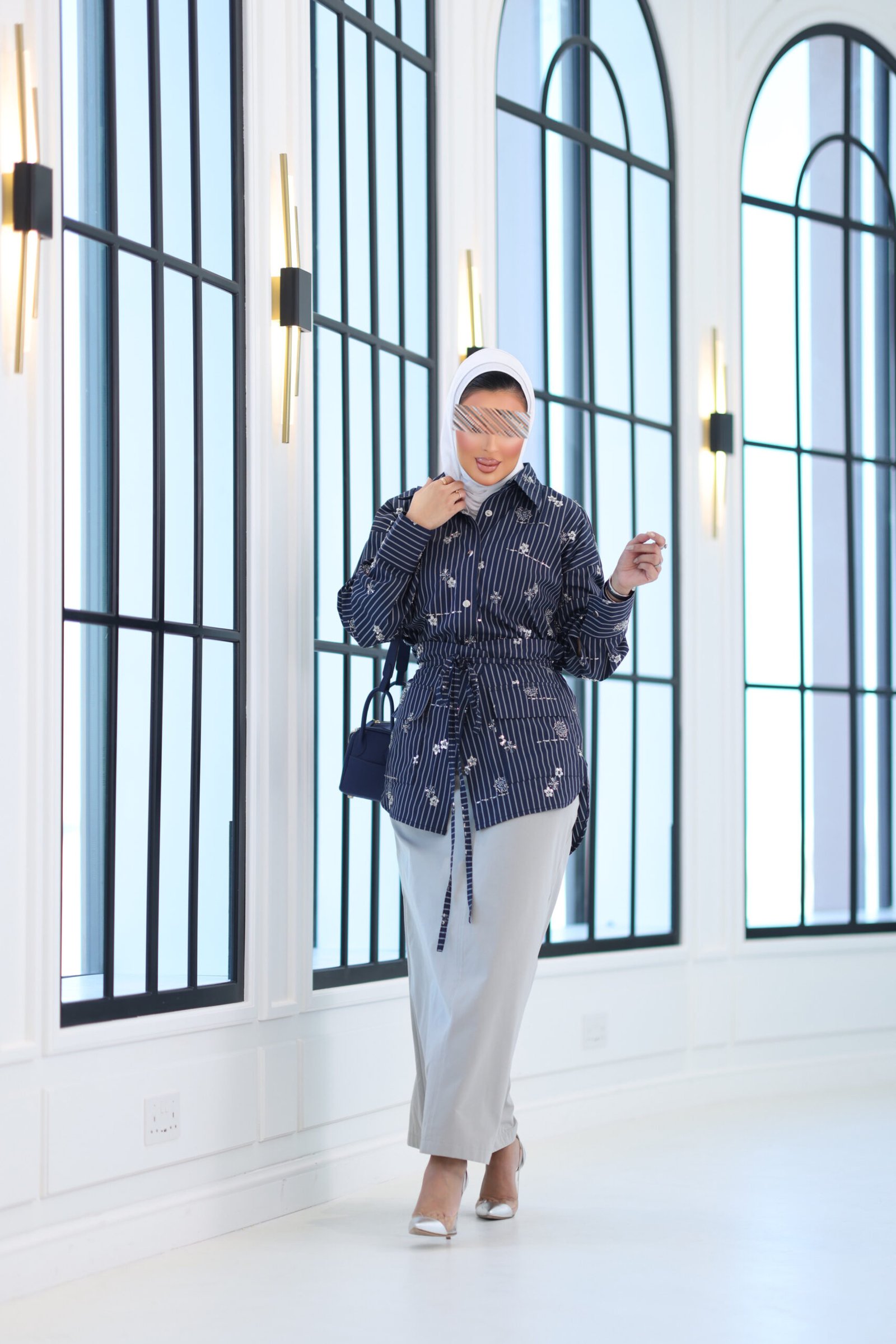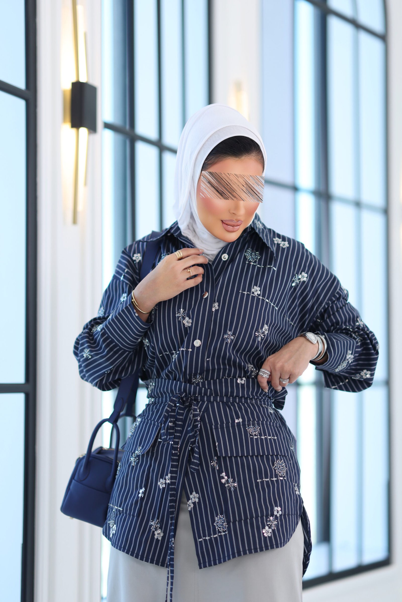 قميص قصه فري سايز عباره عن قطعتين القماش صيفي شك بالكامل مع تنوره او بنطلون