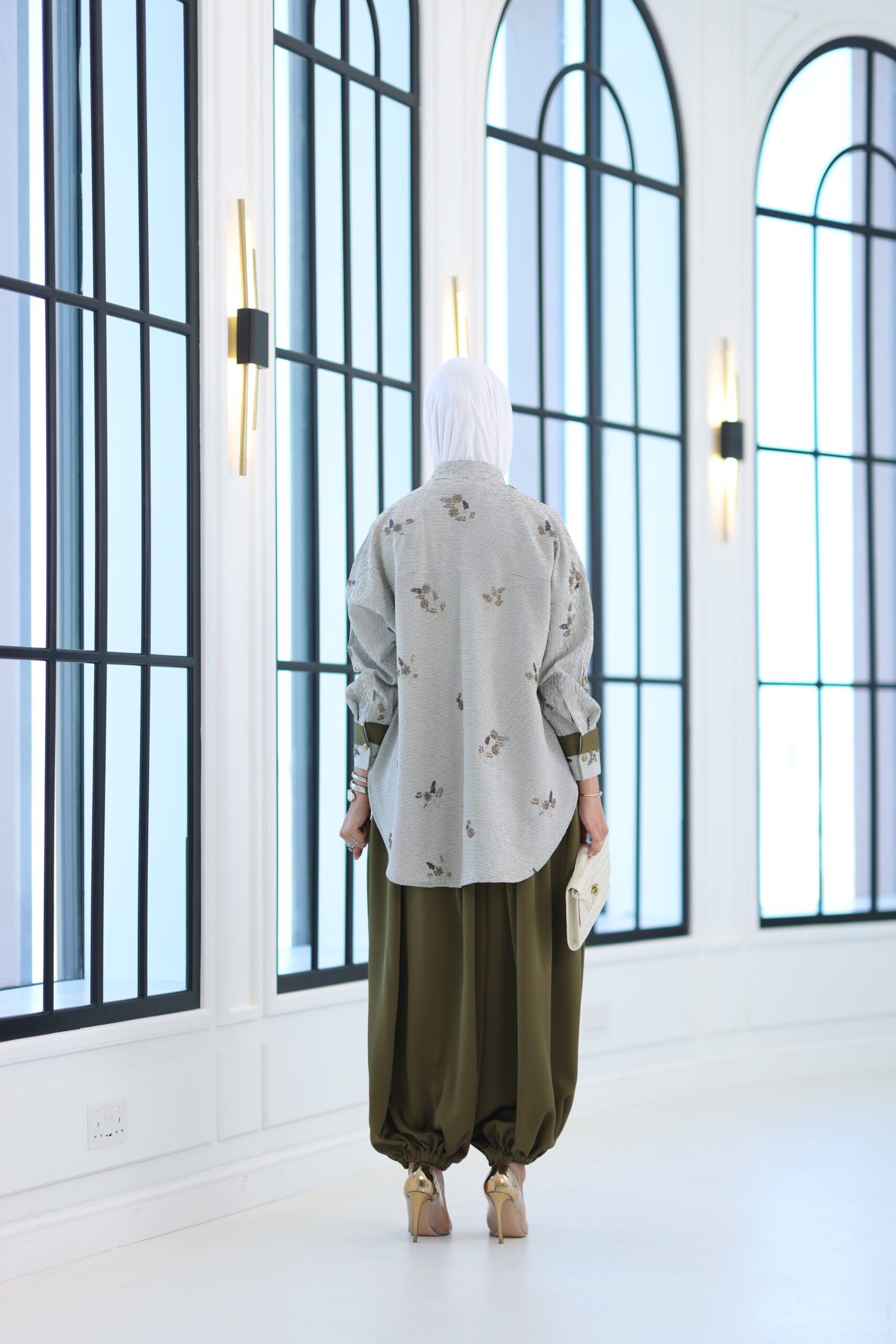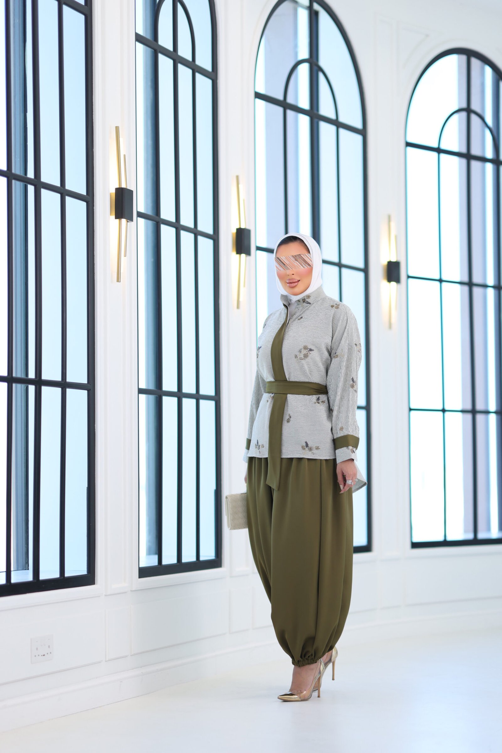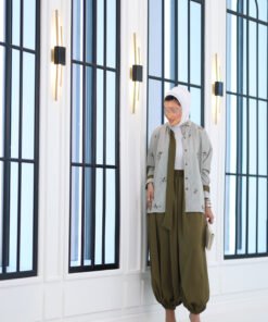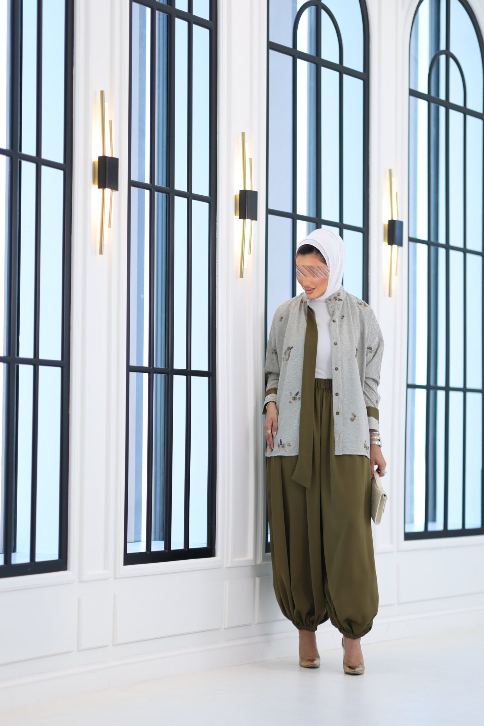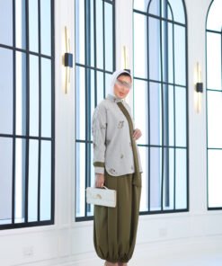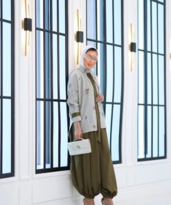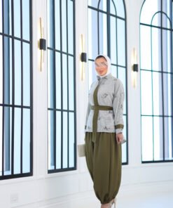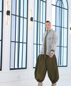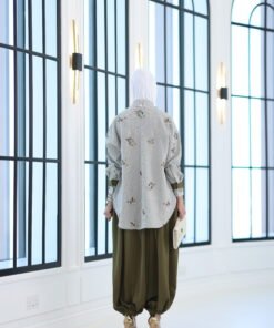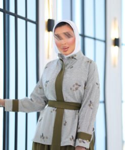 بدله من قطعتين قميص مشكوك بالكامل مع بنطال قصه واسعه وحزام
