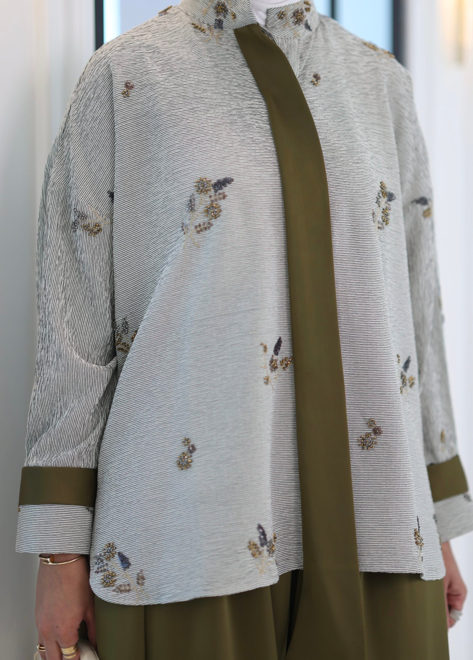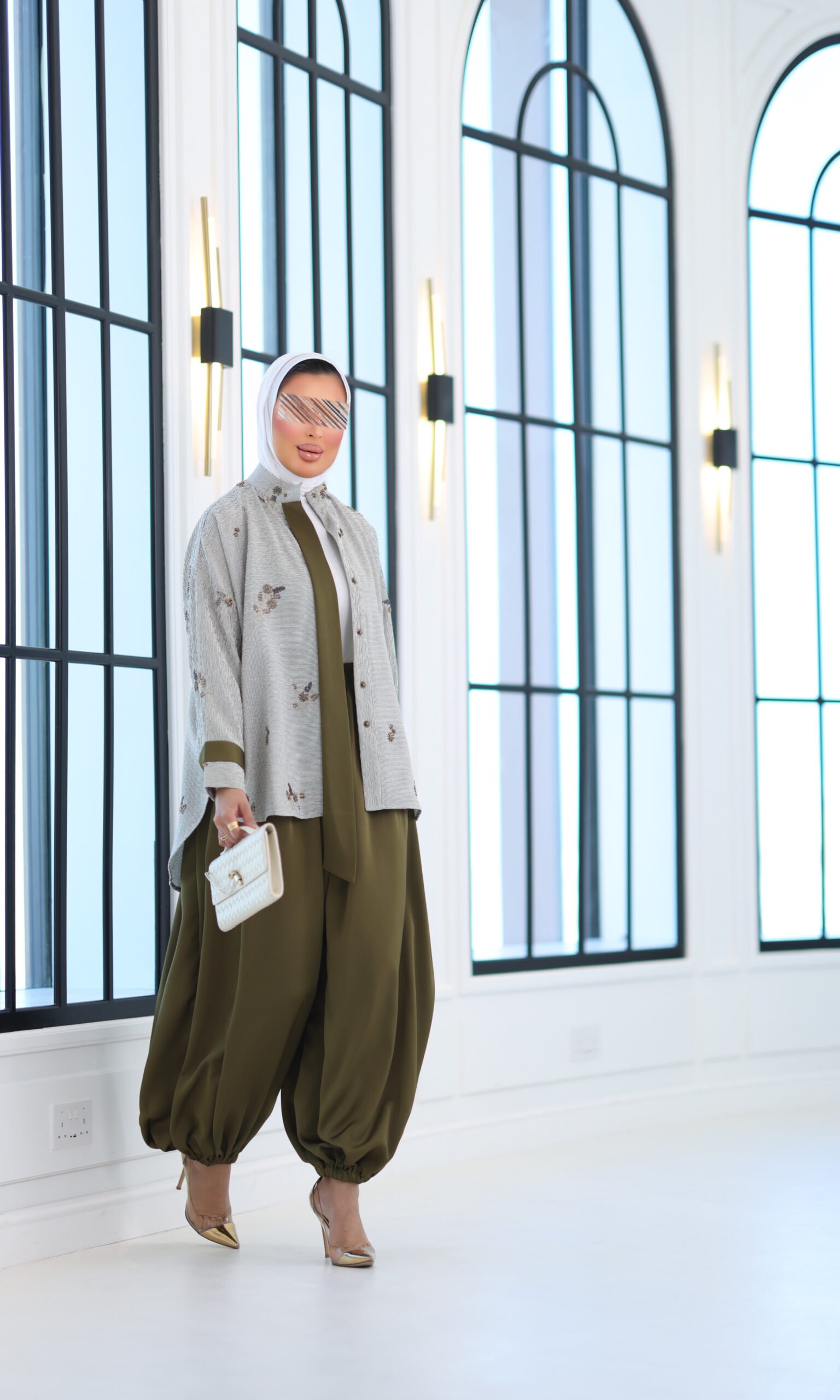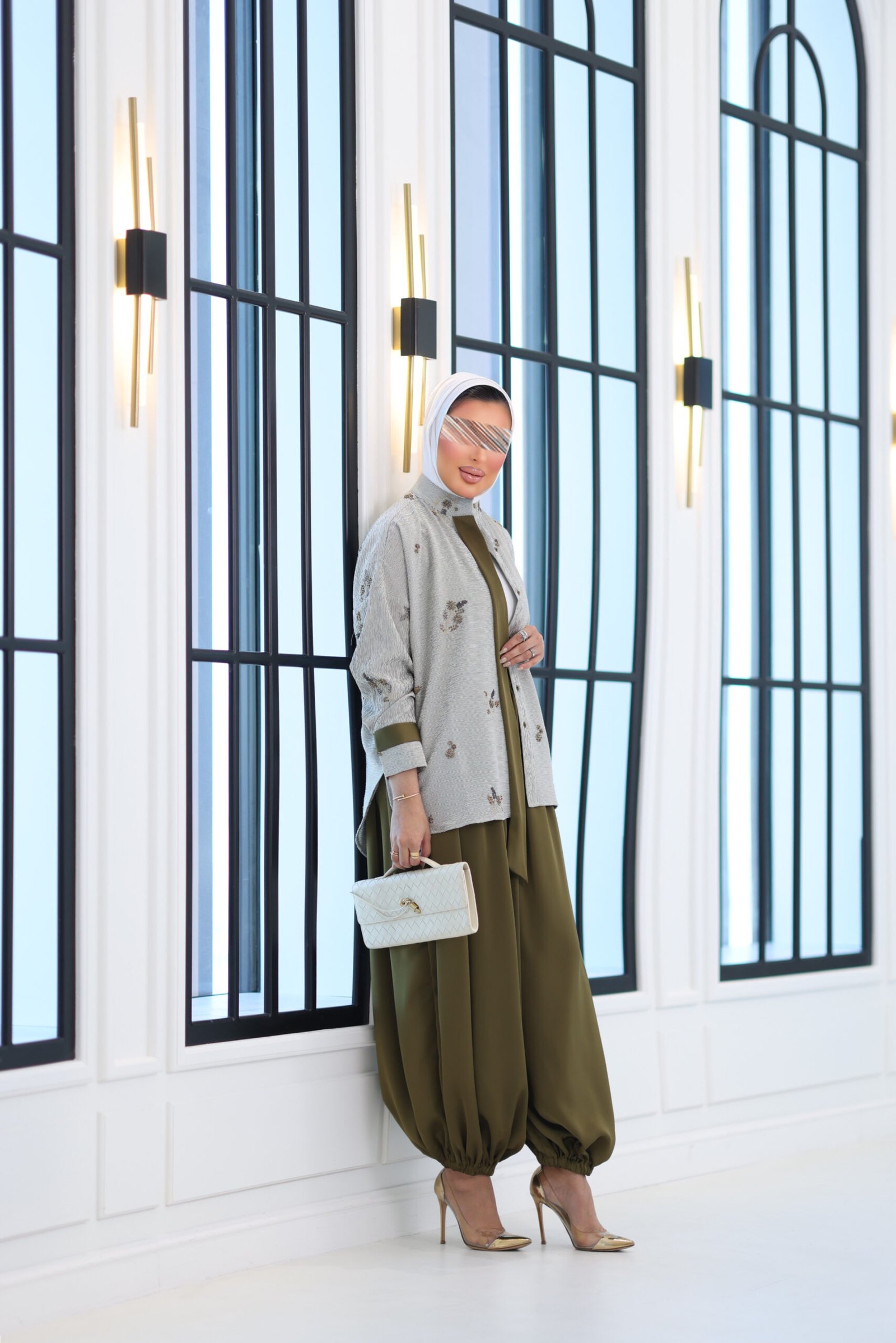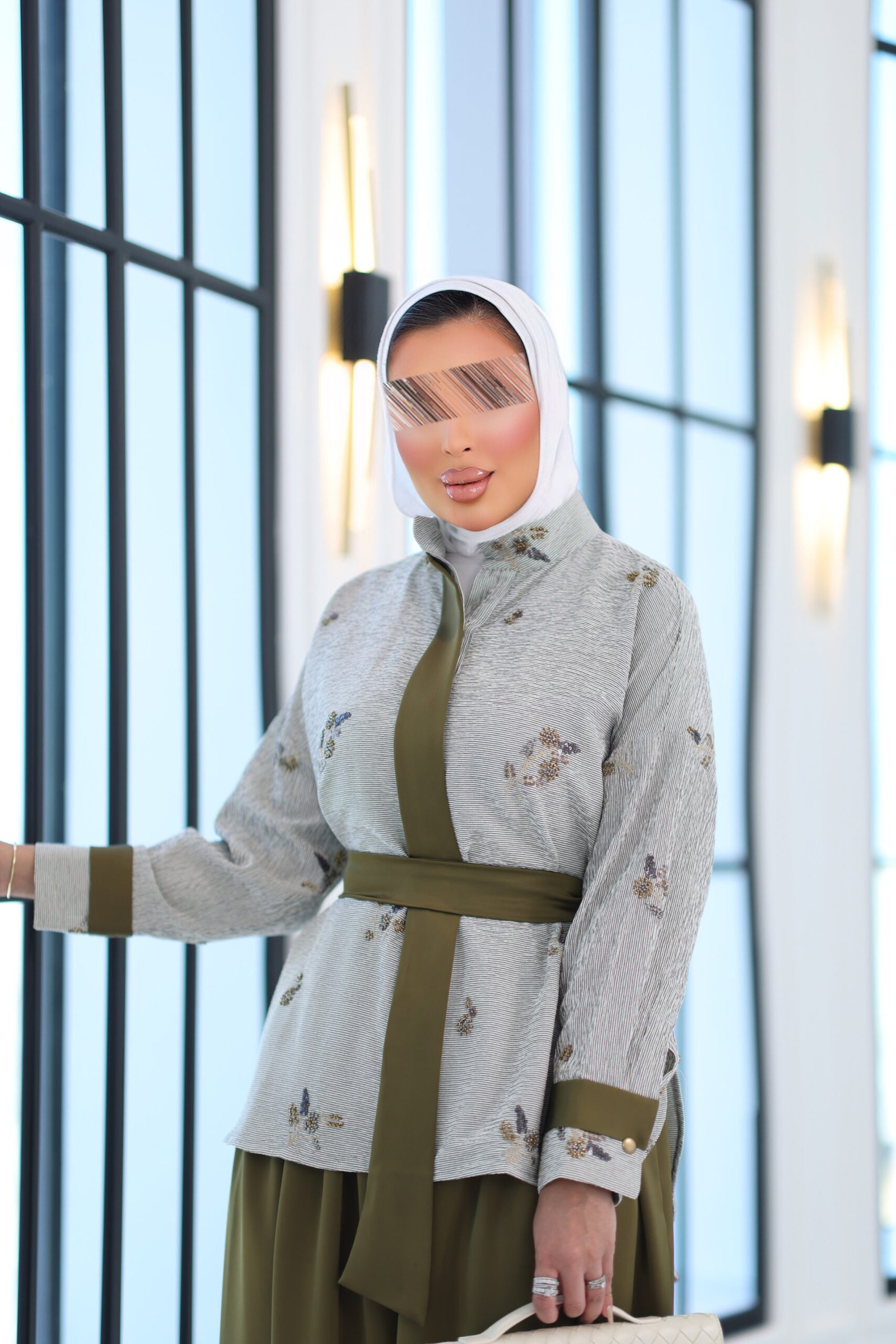 بدله من قطعتين قميص مشكوك بالكامل مع بنطال قصه واسعه وحزام