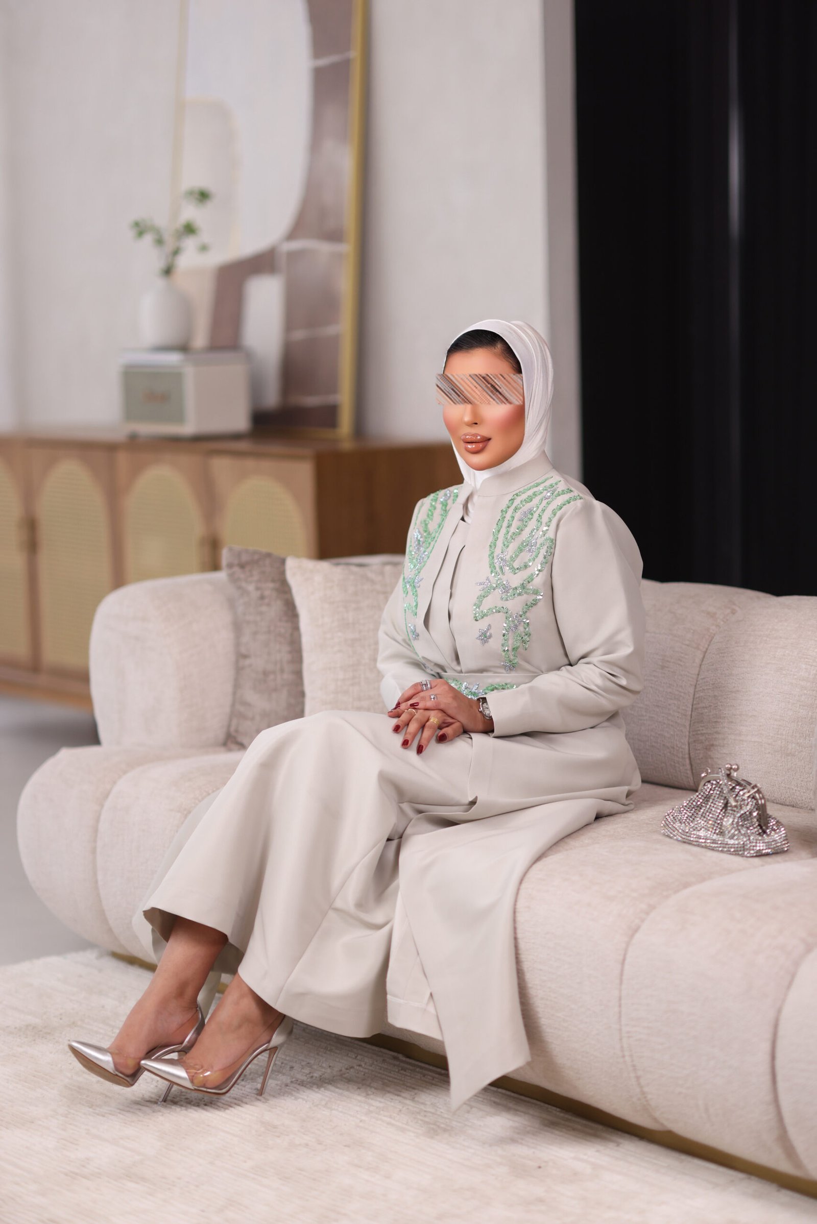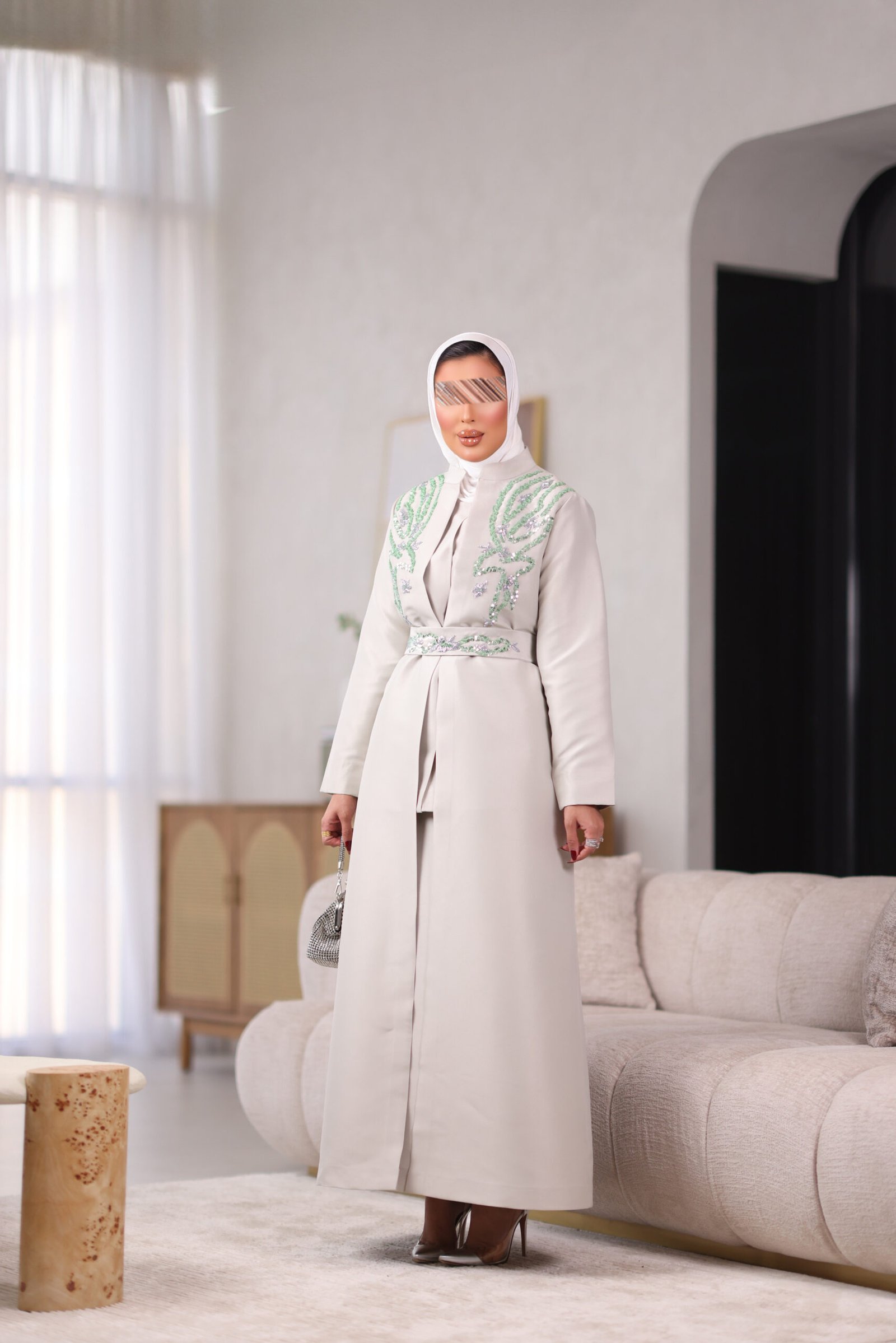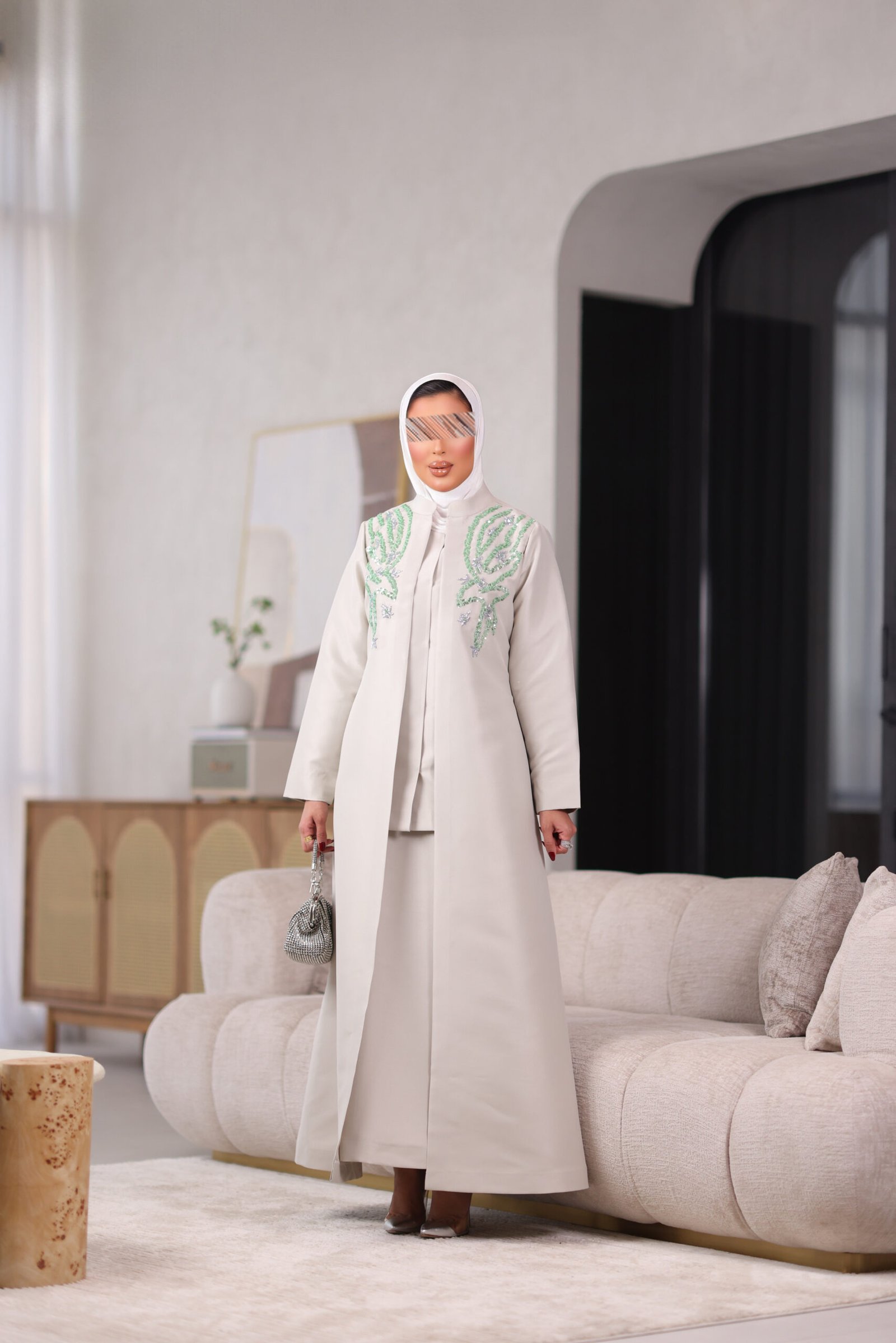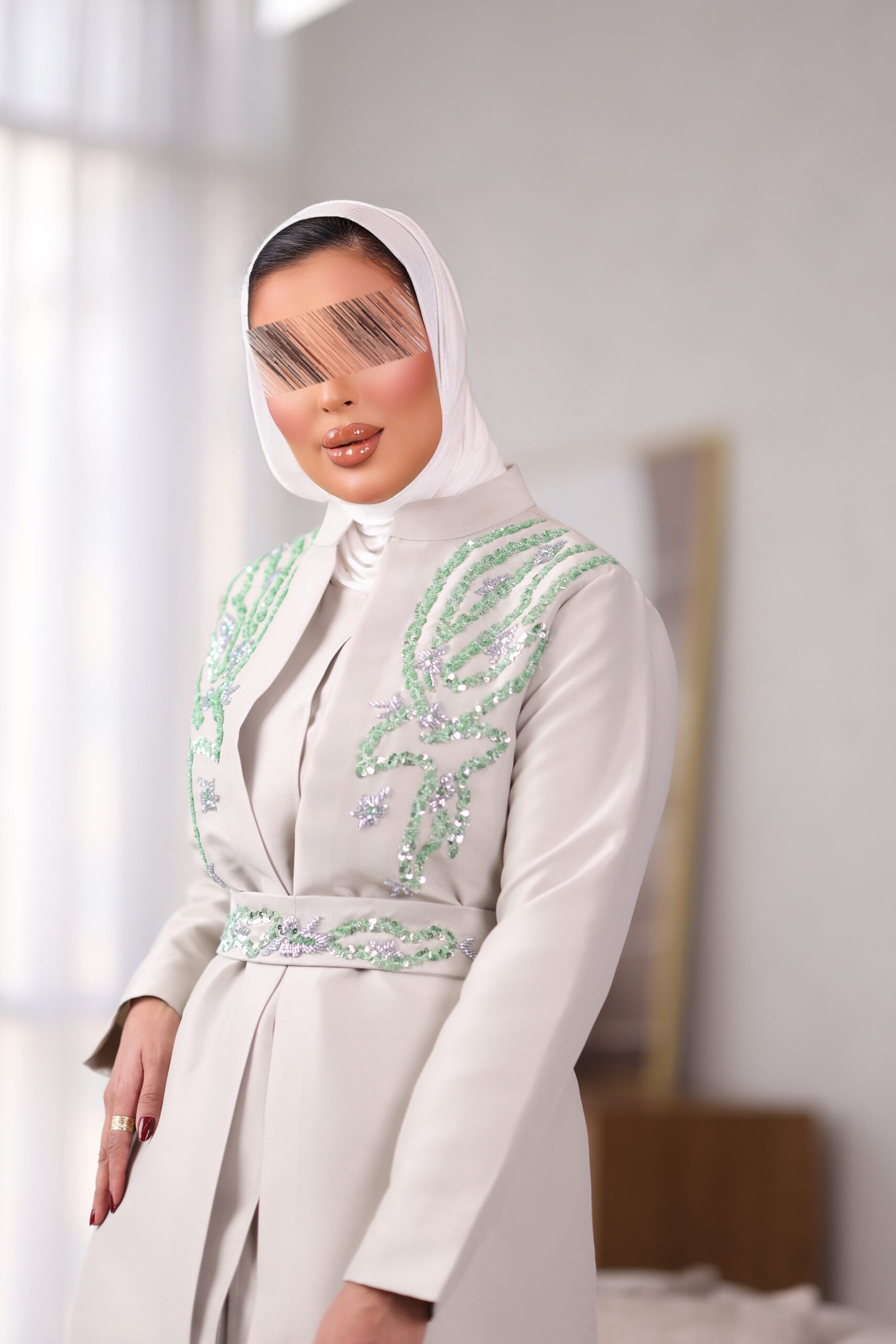 بدله من 3 قطع جاكت كع شك يدوي ًعالي الجوده وتوب وتنوره وحزام شك يدوي