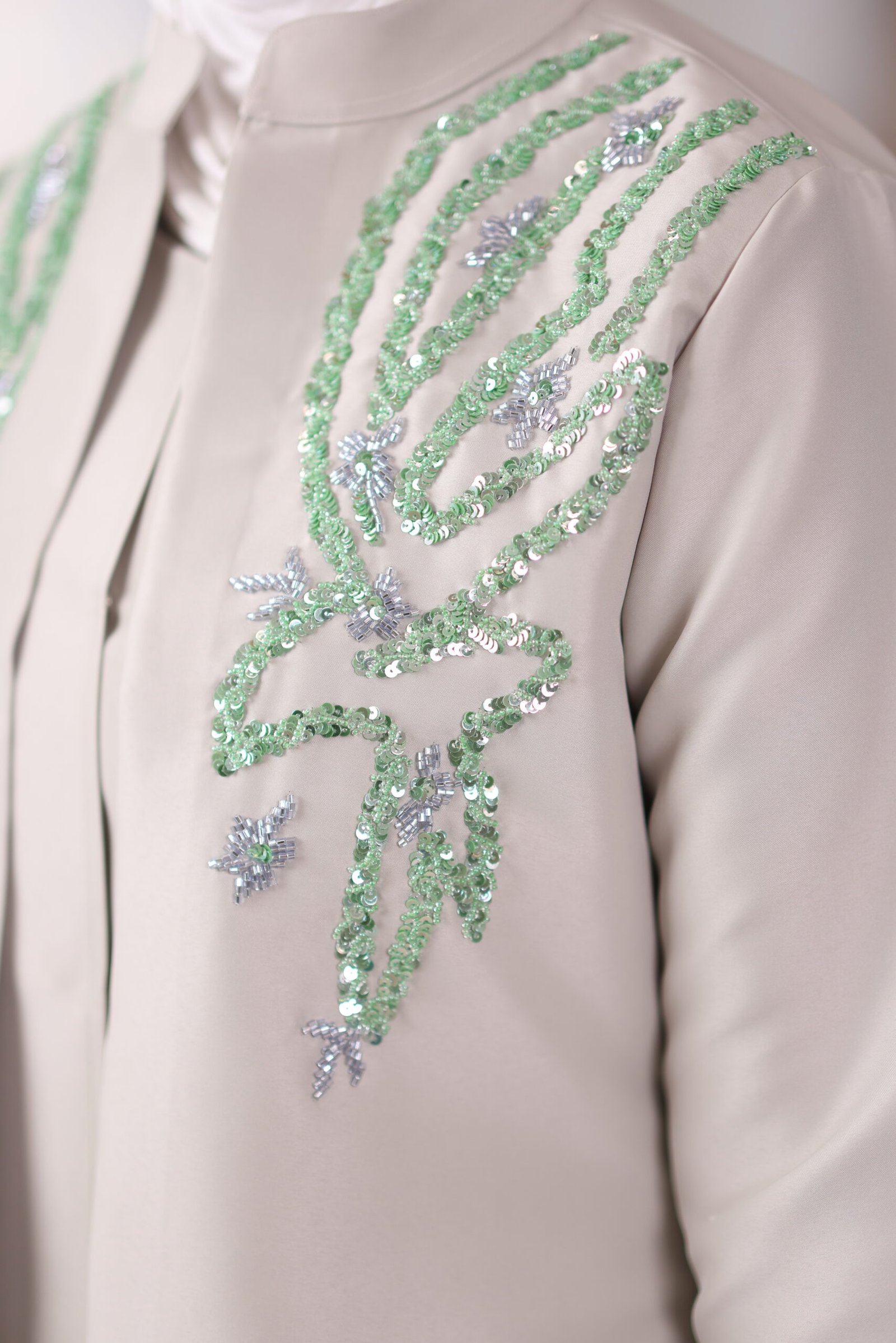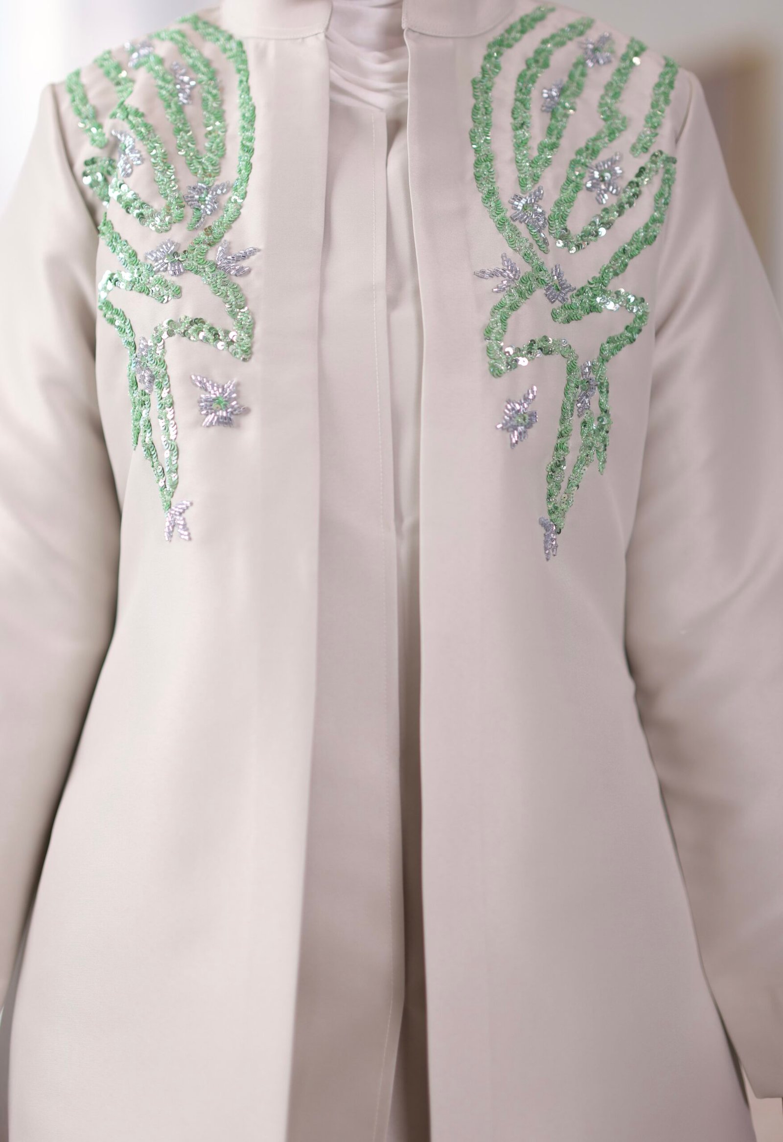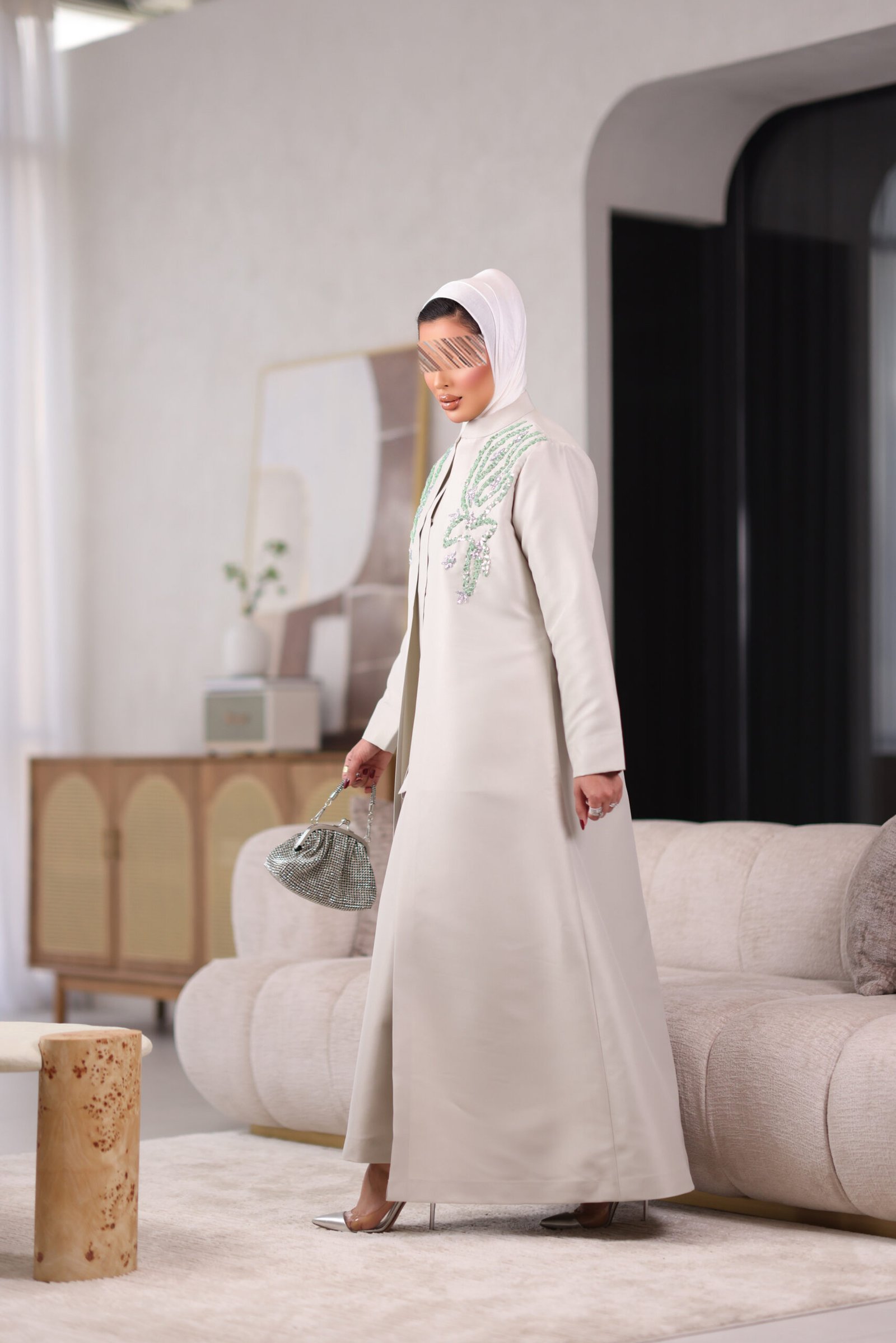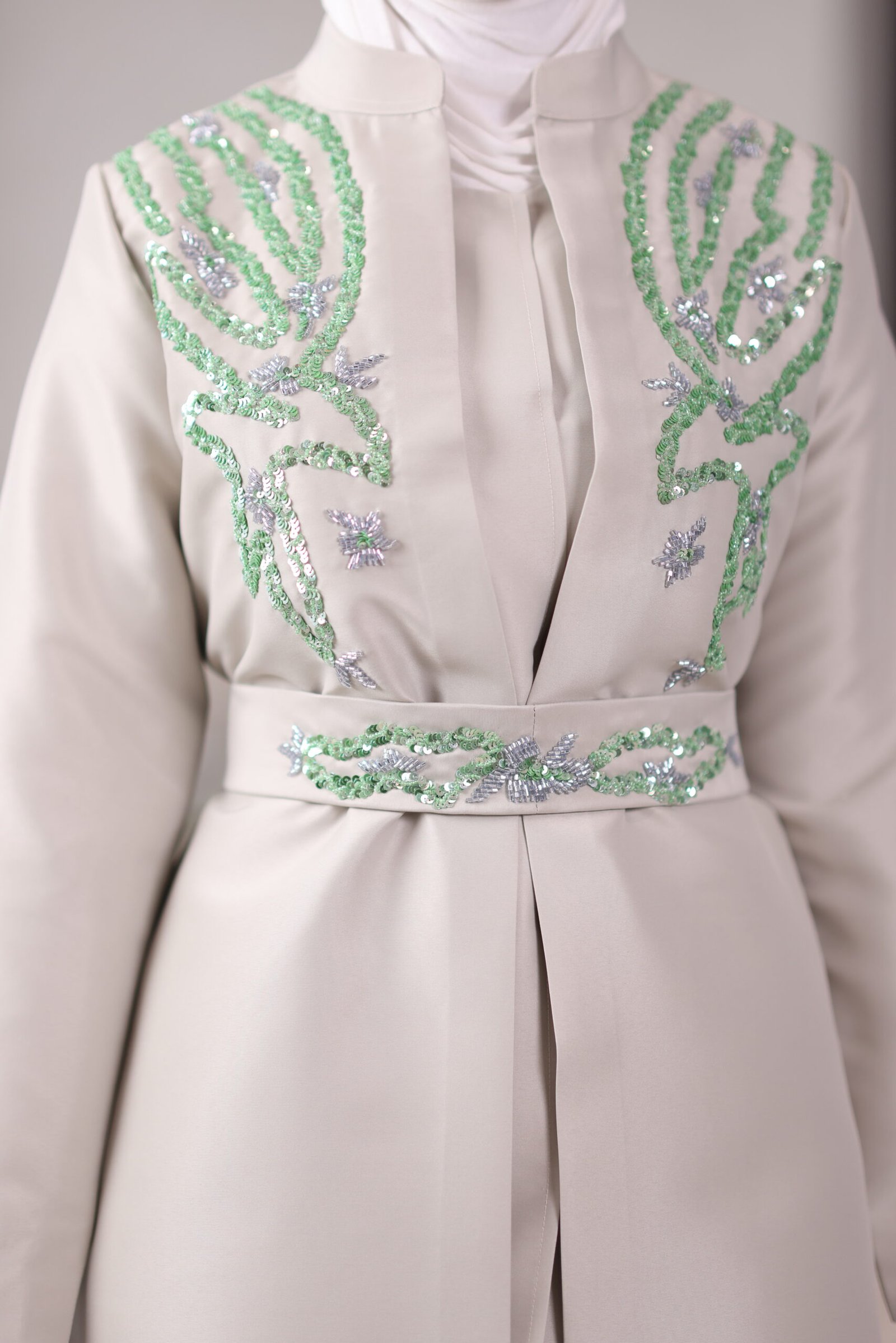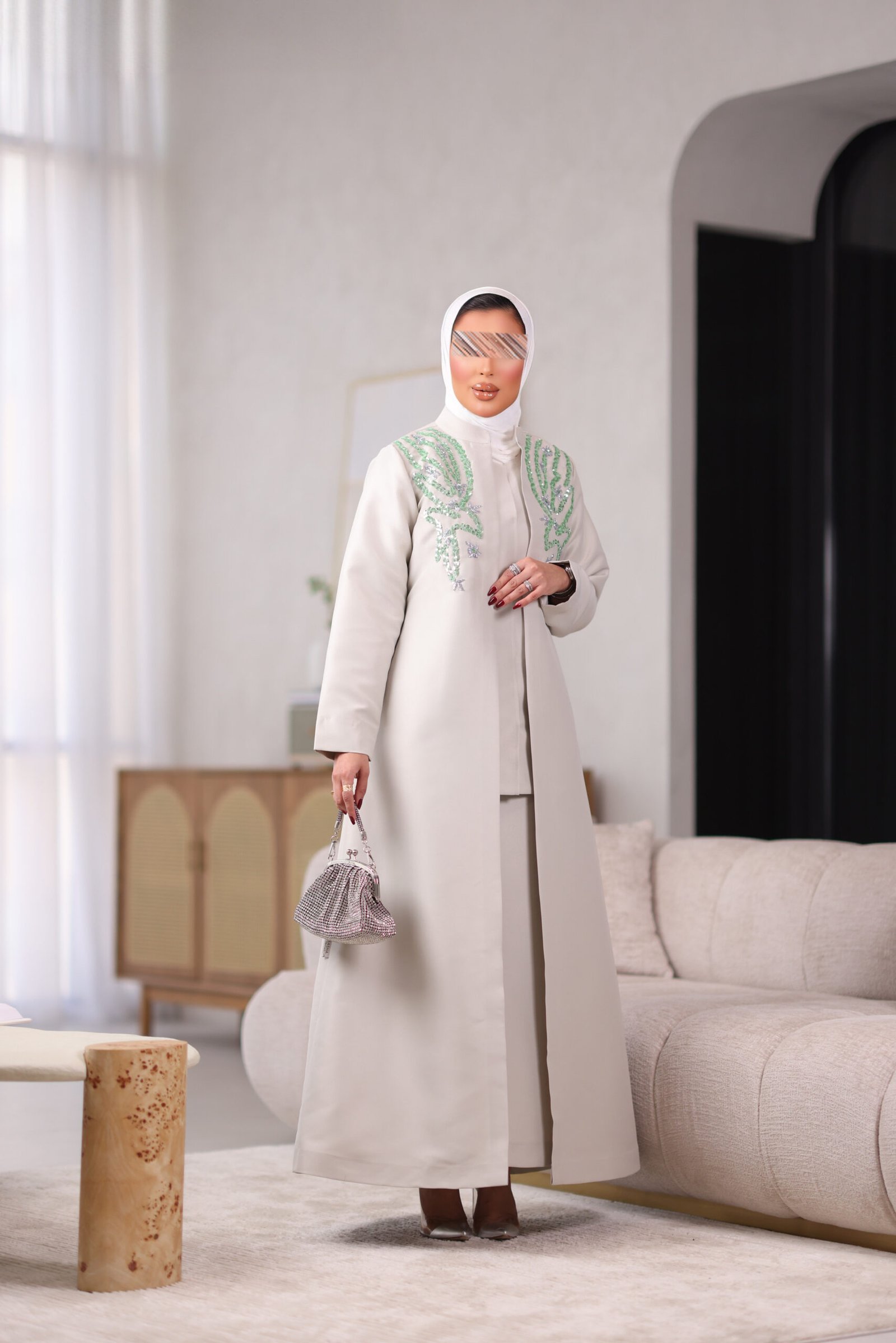 بدله من 3 قطع جاكت كع شك يدوي ًعالي الجوده وتوب وتنوره وحزام شك يدوي
